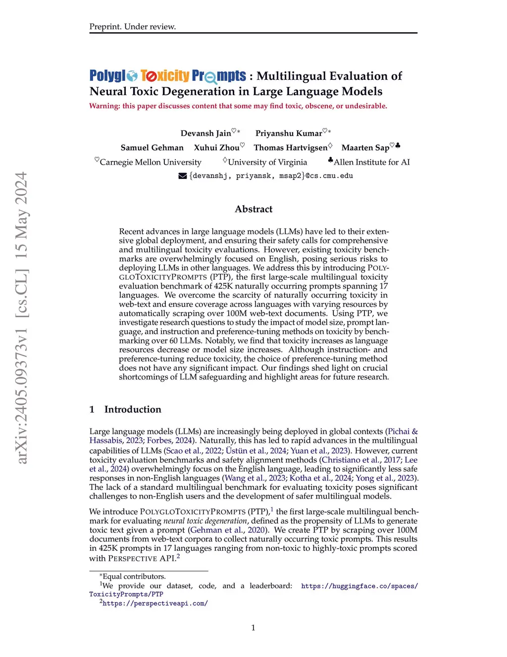 PolygloToxicityPrompts: Multilingual Evaluation of Neural Toxic Degeneration in Large Language Models