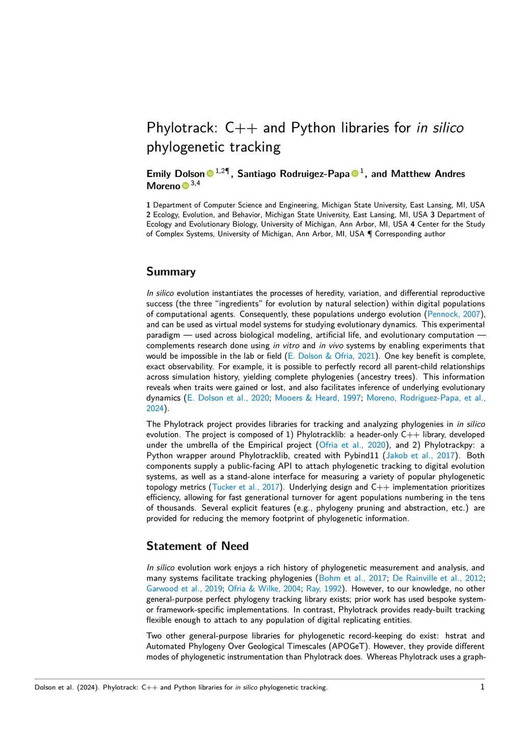 Phylotrack: C++ and Python libraries for in silico phylogenetic tracking