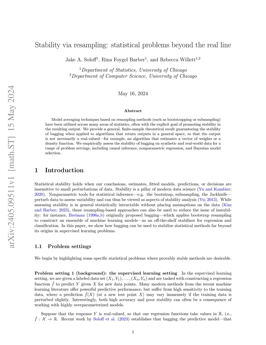 Stability via resampling: statistical problems beyond the real line