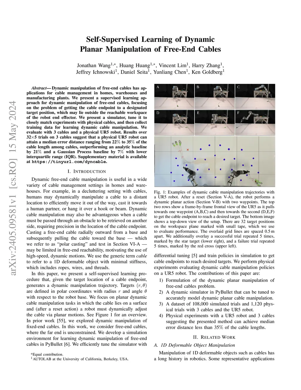 Dynamic manipulation of free-end cables has applications for cable management in homes, warehouses and manufacturing plants. We present a supervised learning approach for dynamic manipulation of free-end cables, focusing on the problem of getting the cable endpoint to a designated target position, which may lie outside the reachable workspace of the robot end effector. We present a simulator, tune it to closely match experiments with physical cables, and then collect training data for learning dynamic cable manipulation. We evaluate with 3 cables and a physical UR5 robot. Results over 32x5 trials on 3 cables suggest that a physical UR5 robot can attain a median error distance ranging from 22% to 35% of the cable length among cables, outperforming an analytic baseline by 21% and a Gaussian Process baseline by 7% with lower interquartile range (IQR).