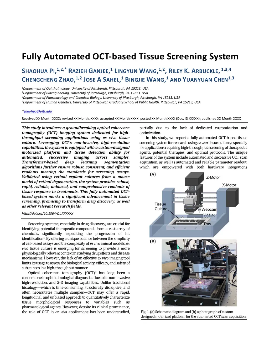 This study introduces a groundbreaking optical coherence tomography (OCT) imaging system dedicated for high-throughput screening applications using ex vivo tissue culture. Leveraging OCT's non-invasive, high-resolution capabilities, the system is equipped with a custom-designed motorized platform and tissue detection ability for automated, successive imaging across samples. Transformer-based deep learning segmentation algorithms further ensure robust, consistent, and efficient readouts meeting the standards for screening assays. Validated using retinal explant cultures from a mouse model of retinal degeneration, the system provides robust, rapid, reliable, unbiased, and comprehensive readouts of tissue response to treatments. This fully automated OCT-based system marks a significant advancement in tissue screening, promising to transform drug discovery, as well as other relevant research fields.