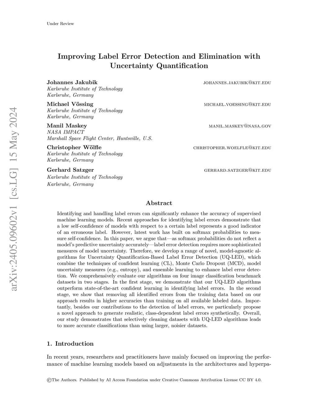 Identifying and handling label errors can significantly enhance the accuracy of supervised machine learning models. Recent approaches for identifying label errors demonstrate that a low self-confidence of models with respect to a certain label represents a good indicator of an erroneous label. However, latest work has built on softmax probabilities to measure self-confidence. In this paper, we argue that -- as softmax probabilities do not reflect a model's predictive uncertainty accurately -- label error detection requires more sophisticated measures of model uncertainty. Therefore, we develop a range of novel, model-agnostic algorithms for Uncertainty Quantification-Based Label Error Detection (UQ-LED), which combine the techniques of confident learning (CL), Monte Carlo Dropout (MCD), model uncertainty measures (e.g., entropy), and ensemble learning to enhance label error detection. We comprehensively evaluate our algorithms on four image classification benchmark datasets in two stages. In the first stage, we demonstrate that our UQ-LED algorithms outperform state-of-the-art confident learning in identifying label errors. In the second stage, we show that removing all identified errors from the training data based on our approach results in higher accuracies than training on all available labeled data. Importantly, besides our contributions to the detection of label errors, we particularly propose a novel approach to generate realistic, class-dependent label errors synthetically. Overall, our study demonstrates that selectively cleaning datasets with UQ-LED algorithms leads to more accurate classifications than using larger, noisier datasets.