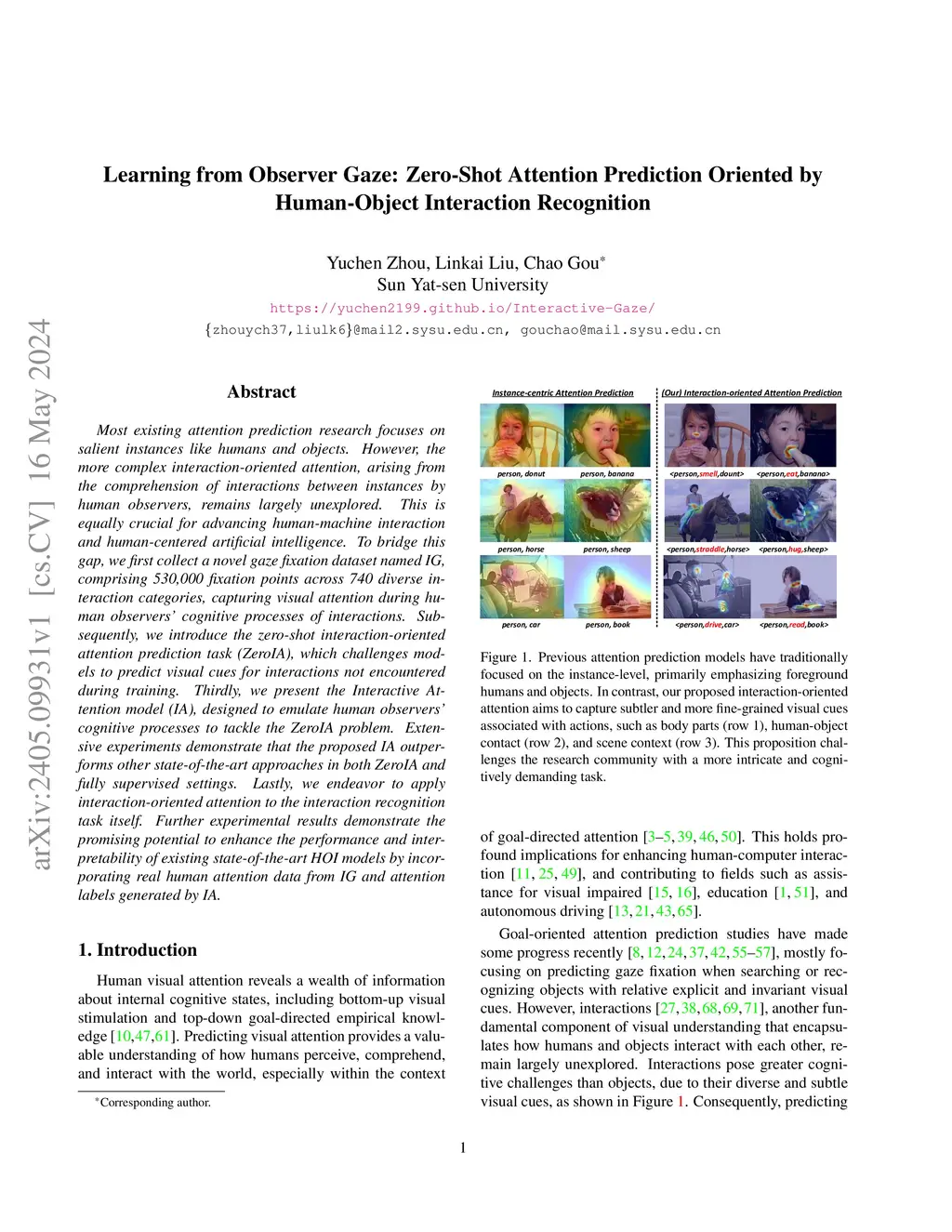 Most existing attention prediction research focuses on salient instances like humans and objects. However, the more complex interaction-oriented attention, arising from the comprehension of interactions between instances by human observers, remains largely unexplored. This is equally crucial for advancing human-machine interaction and human-centered artificial intelligence. To bridge this gap, we first collect a novel gaze fixation dataset named IG, comprising 530,000 fixation points across 740 diverse interaction categories, capturing visual attention during human observers cognitive processes of interactions. Subsequently, we introduce the zero-shot interaction-oriented attention prediction task ZeroIA, which challenges models to predict visual cues for interactions not encountered during training. Thirdly, we present the Interactive Attention model IA, designed to emulate human observers cognitive processes to tackle the ZeroIA problem. Extensive experiments demonstrate that the proposed IA outperforms other state-of-the-art approaches in both ZeroIA and fully supervised settings. Lastly, we endeavor to apply interaction-oriented attention to the interaction recognition task itself. Further experimental results demonstrate the promising potential to enhance the performance and interpretability of existing state-of-the-art HOI models by incorporating real human attention data from IG and attention labels generated by IA.