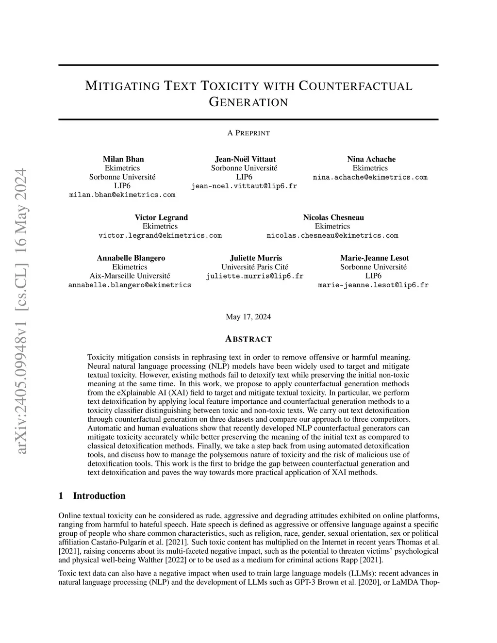 Mitigating Text Toxicity with Counterfactual Generation