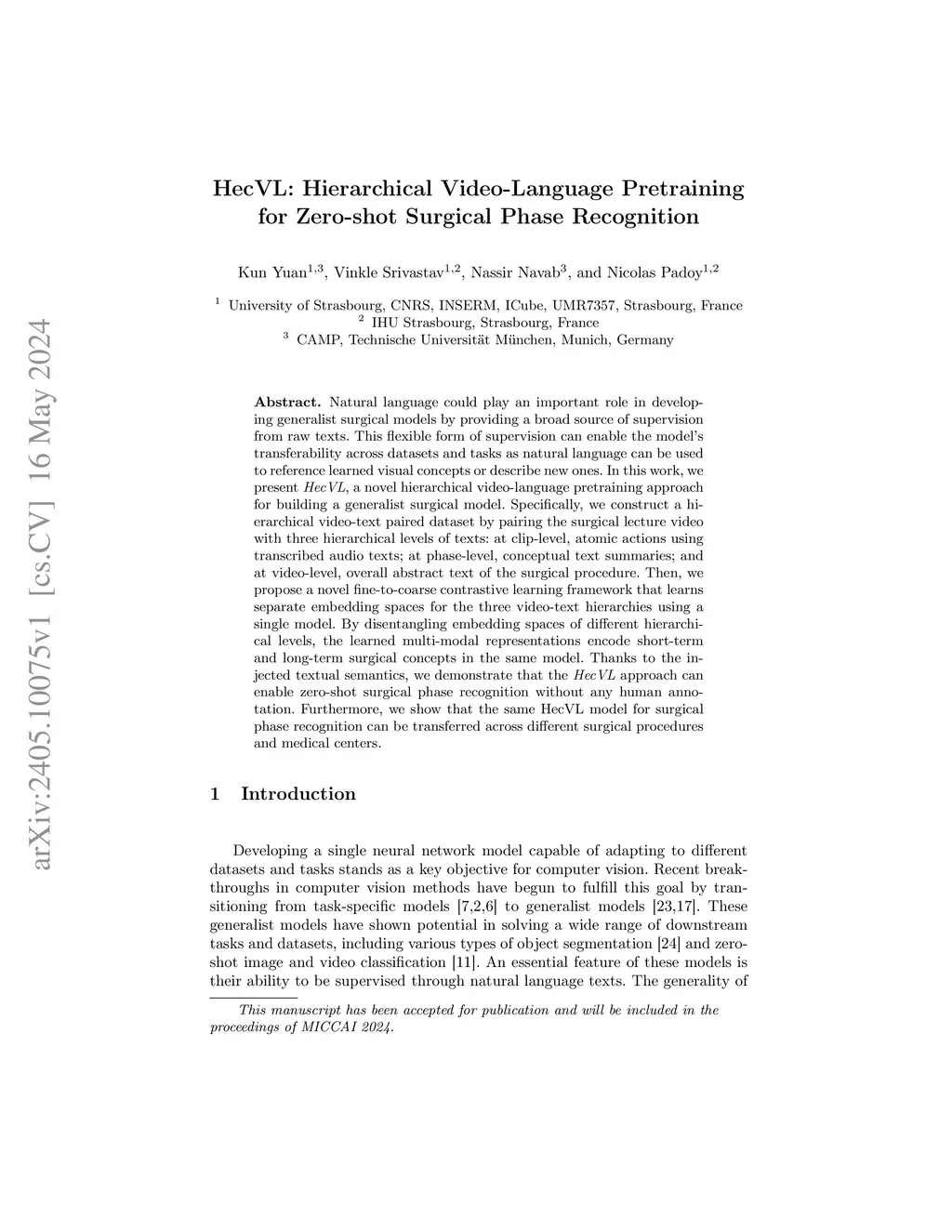 HecVL: Hierarchical Video-Language Pretraining for Zero-shot Surgical Phase Recognition