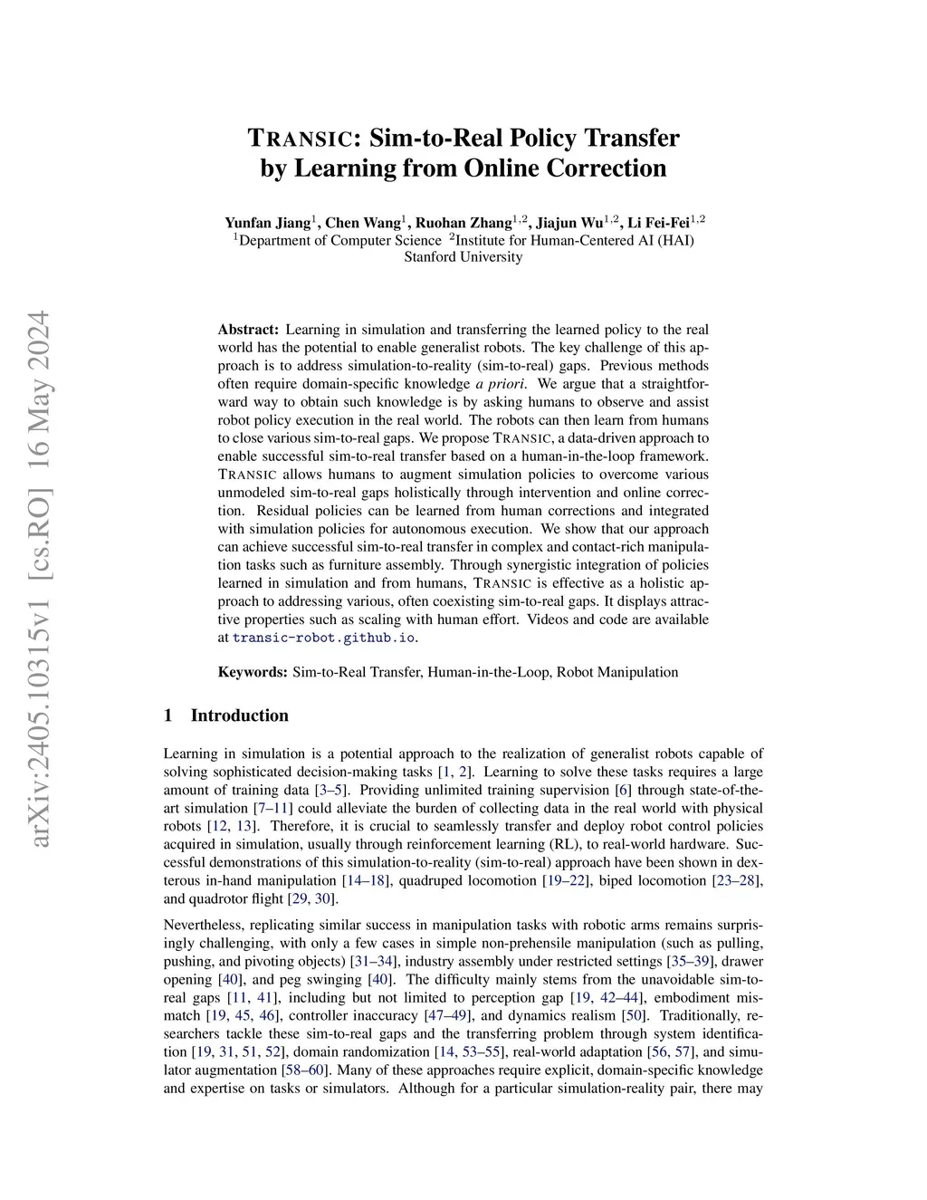 TRANSIC: Sim-to-Real Policy Transfer by Learning from Online Correction
