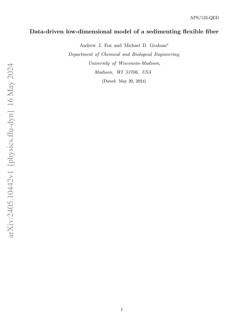 Data-driven low-dimensional model of a sedimenting flexible fiber