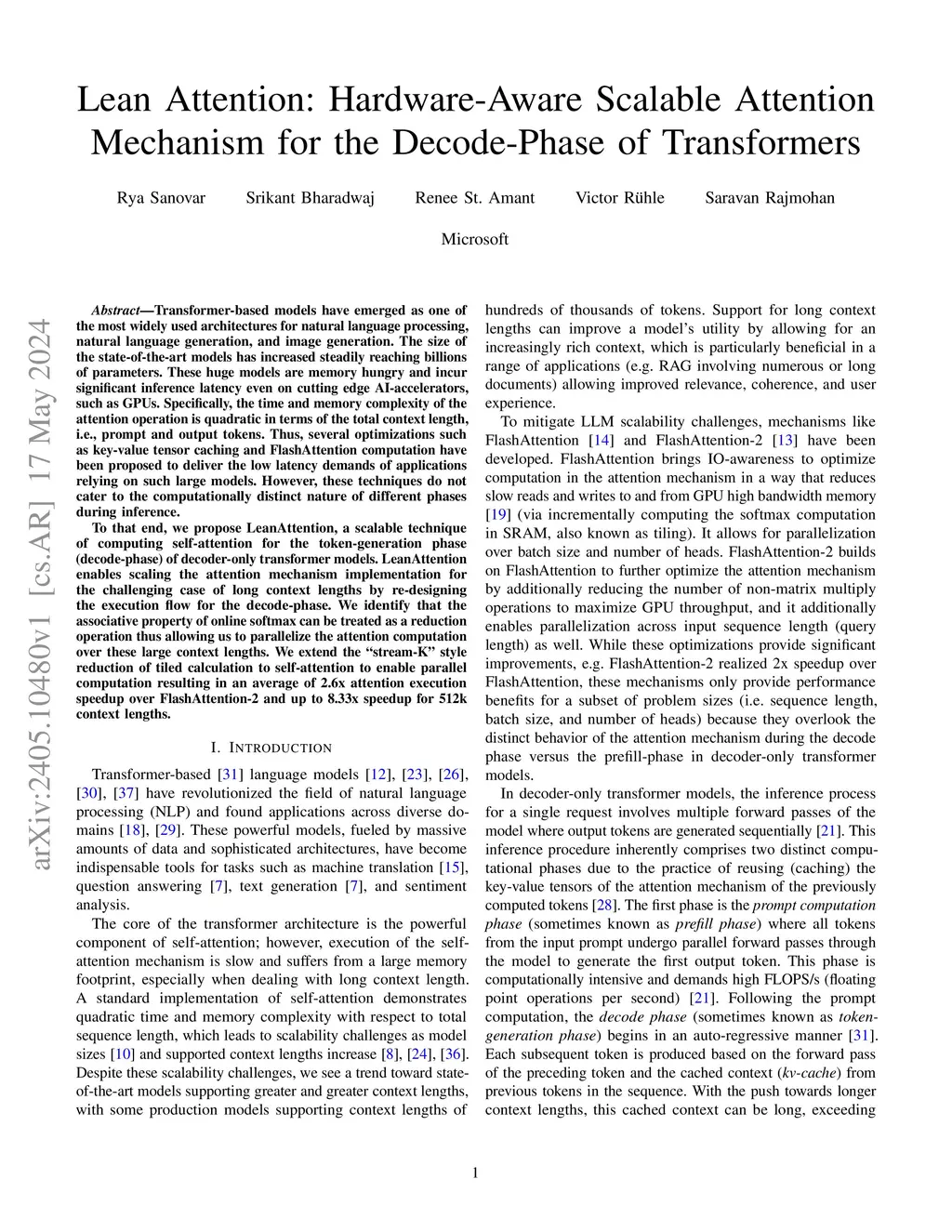 Lean Attention: Hardware-Aware Scalable Attention Mechanism for the Decode-Phase of Transformers