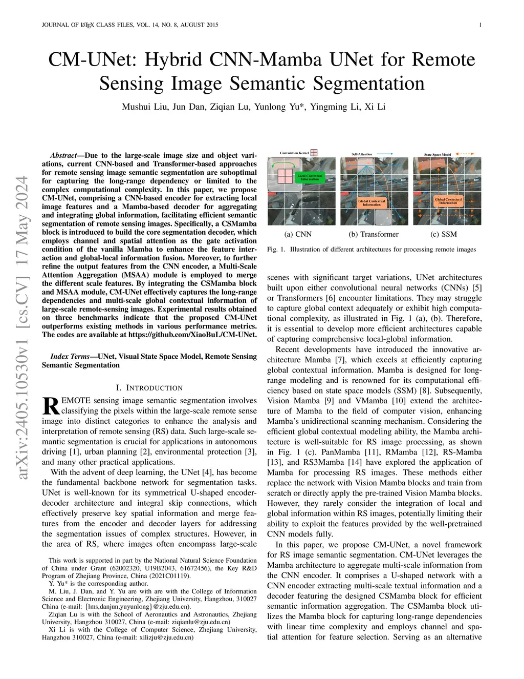 CM-UNet: Hybrid CNN-Mamba UNet for Remote Sensing Image Semantic