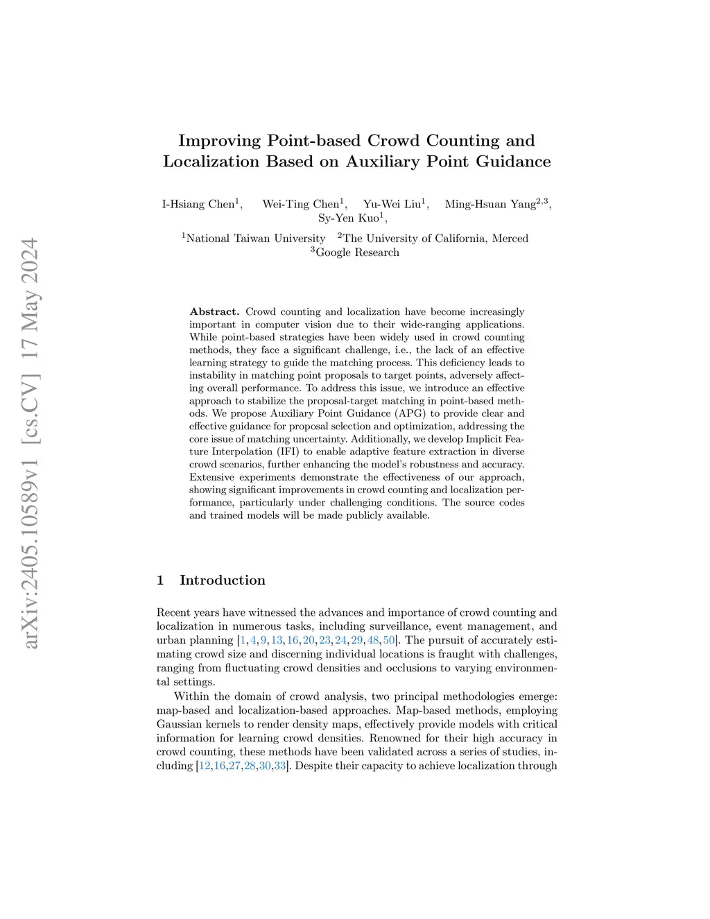 Crowd counting and localization have become increasingly important in computer vision due to their wide-ranging applications. While point-based strategies have been widely used in crowd counting methods, they face a significant challenge, i.e., the lack of an effective learning strategy to guide the matching process. This deficiency leads to instability in matching point proposals to target points, adversely affecting overall performance. To address this issue, we introduce an effective approach to stabilize the proposal-target matching in point-based methods. We propose Auxiliary Point Guidance (APG) to provide clear and effective guidance for proposal selection and optimization, addressing the core issue of matching uncertainty. Additionally, we develop Implicit Feature Interpolation (IFI) to enable adaptive feature extraction in diverse crowd scenarios, further enhancing the model's robustness and accuracy. Extensive experiments demonstrate the effectiveness of our approach, showing significant improvements in crowd counting and localization performance, particularly under challenging conditions. The source codes and trained models will be made publicly available.