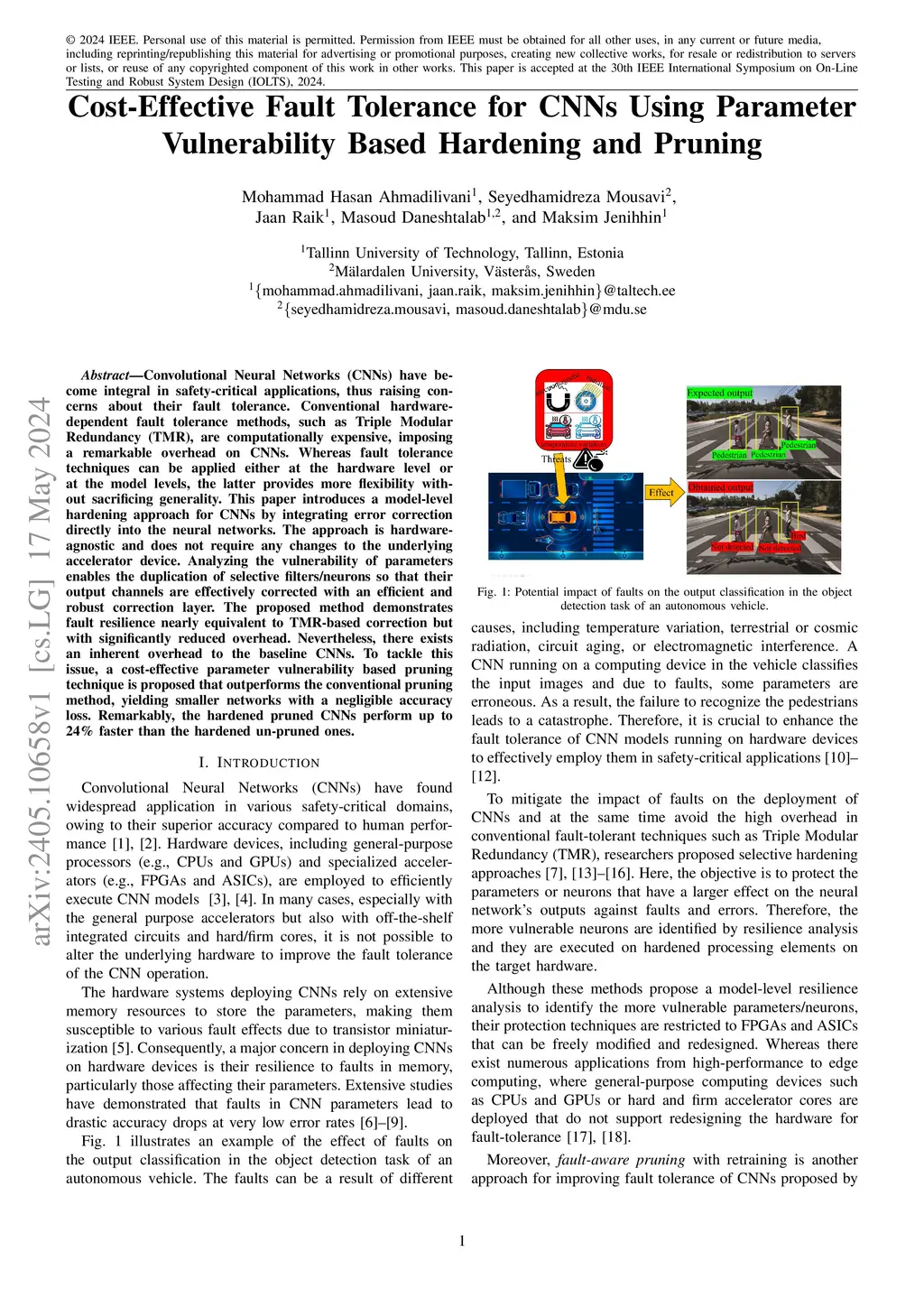 Cost-Effective Fault Tolerance for CNNs Using Parameter Vulnerability