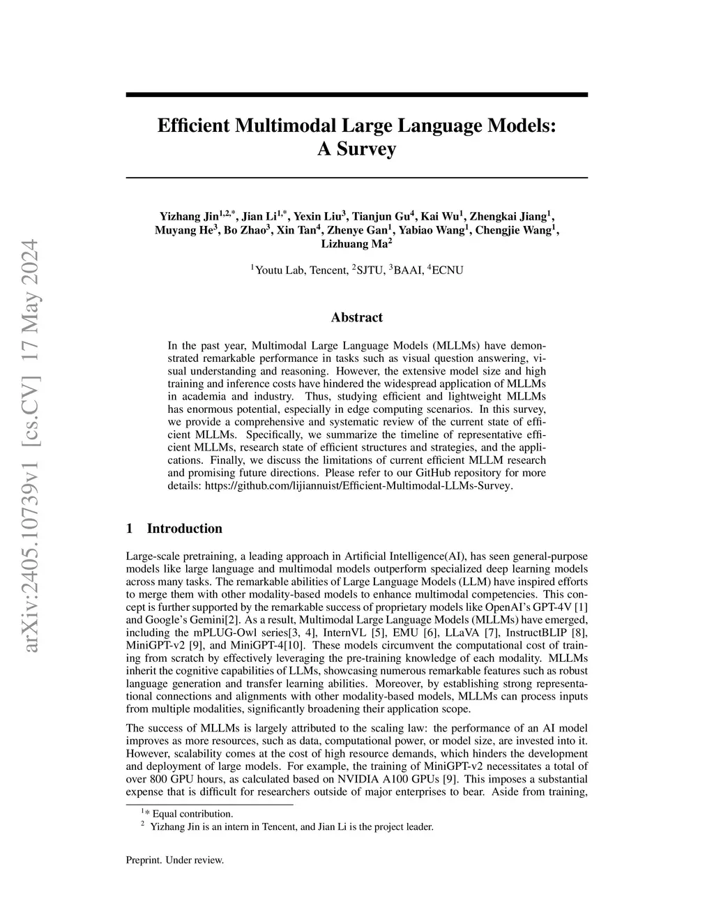 Efficient Multimodal Large Language Models: A Survey