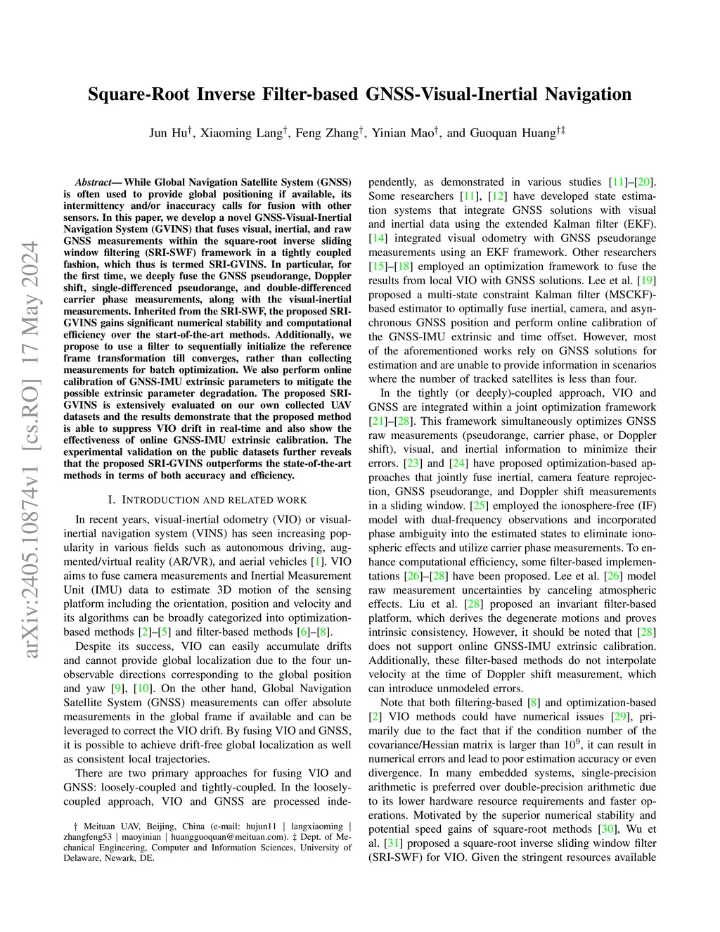 Square-Root Inverse Filter-based GNSS-Visual-Inertial Navigation