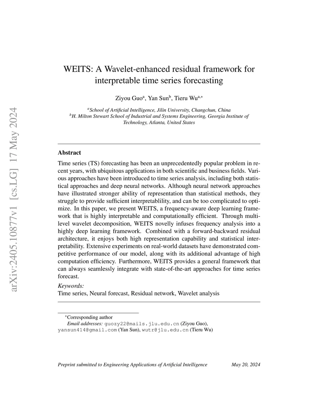 WEITS: A Wavelet-enhanced residual framework for interpretable time