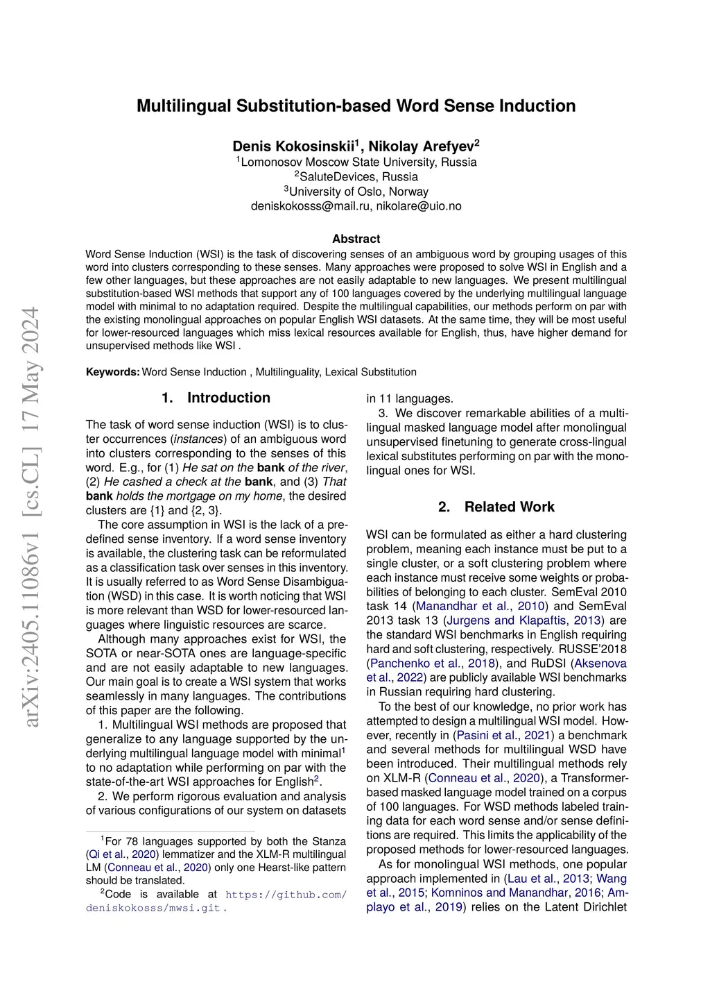 Multilingual Substitution-based Word Sense Induction