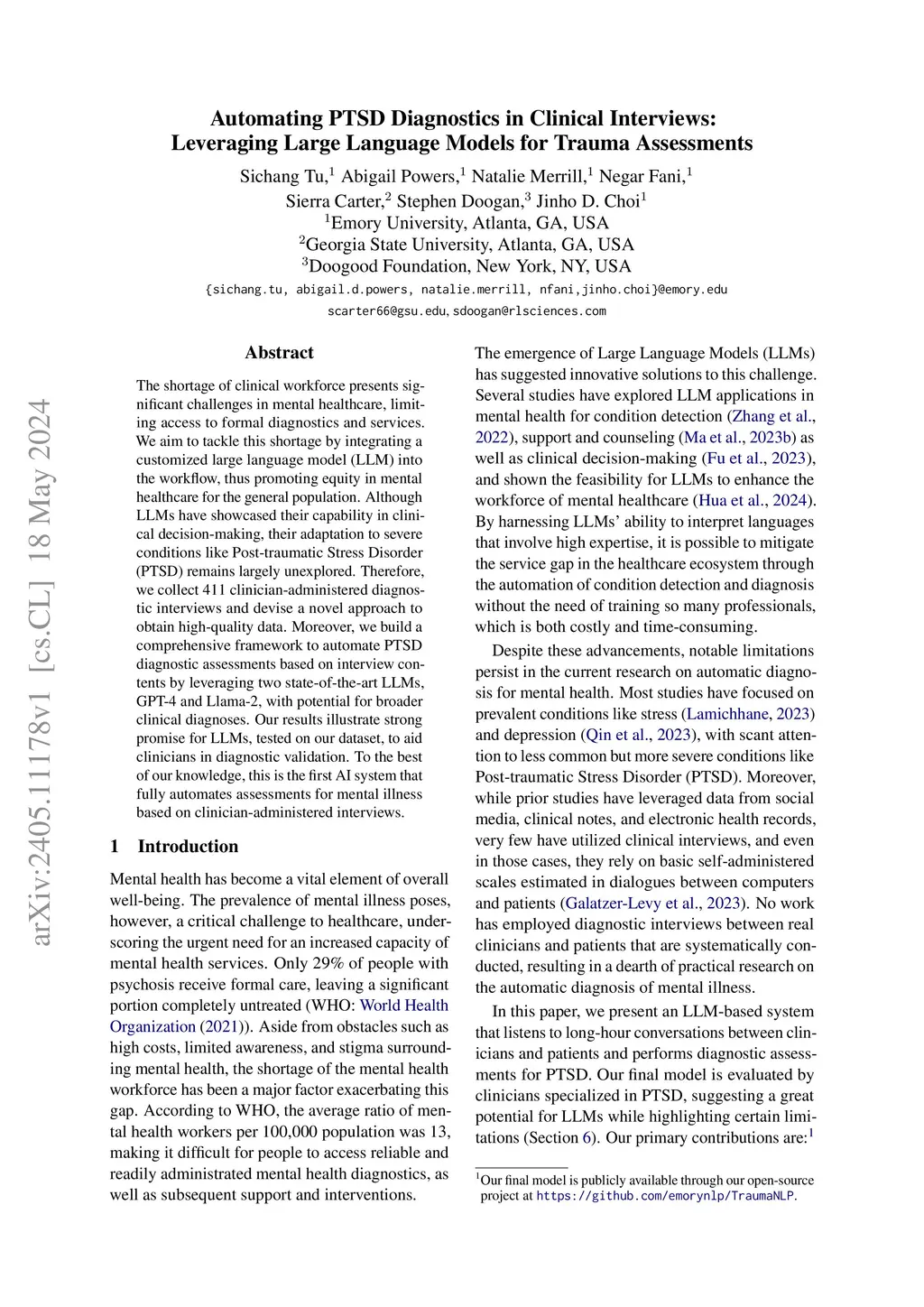 Automating PTSD Diagnostics in Clinical Interviews: Leveraging Large