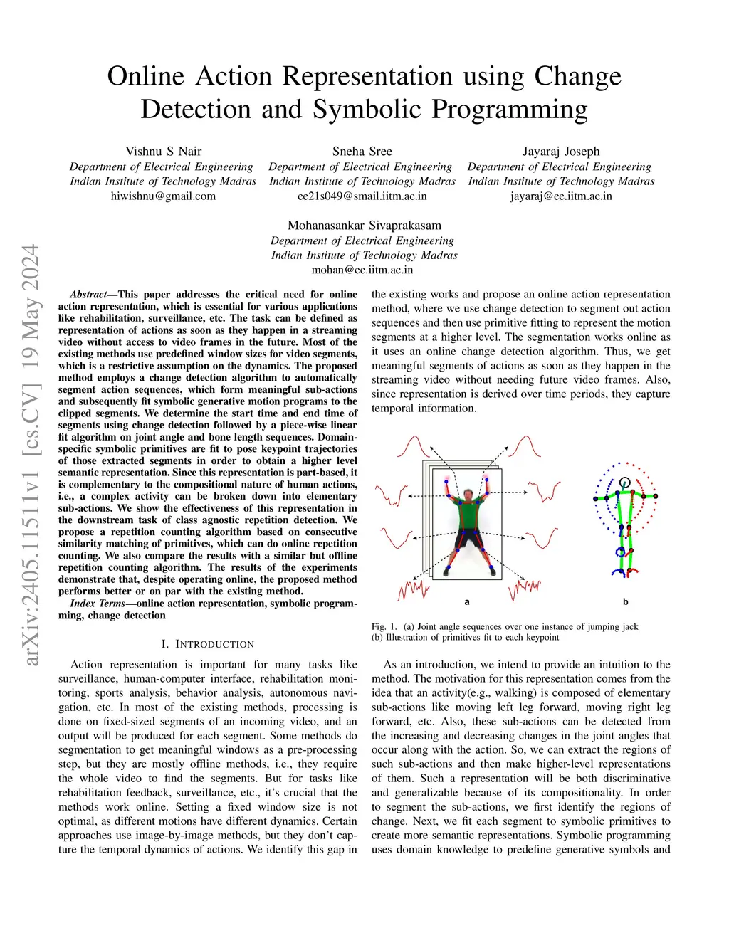 This paper addresses the critical need for online action representation, which is essential for various applications like rehabilitation, surveillance, etc. The task can be defined as representation of actions as soon as they happen in a streaming video without access to video frames in the future. Most of the existing methods use predefined window sizes for video segments, which is a restrictive assumption on the dynamics. The proposed method employs a change detection algorithm to automatically segment action sequences, which form meaningful sub-actions and subsequently fit symbolic generative motion programs to the clipped segments. We determine the start time and end time of segments using change detection followed by a piece-wise linear fit algorithm on joint angle and bone length sequences. Domain-specific symbolic primitives are fit to pose keypoint trajectories of those extracted segments in order to obtain a higher level semantic representation. Since this representation is part-based, it is complementary to the compositional nature of human actions, i.e., a complex activity can be broken down into elementary sub-actions. We show the effectiveness of this representation in the downstream task of class agnostic repetition detection. We propose a repetition counting algorithm based on consecutive similarity matching of primitives, which can do online repetition counting. We also compare the results with a similar but offline repetition counting algorithm. The results of the experiments demonstrate that, despite operating online, the proposed method performs better or on par with the existing method.
