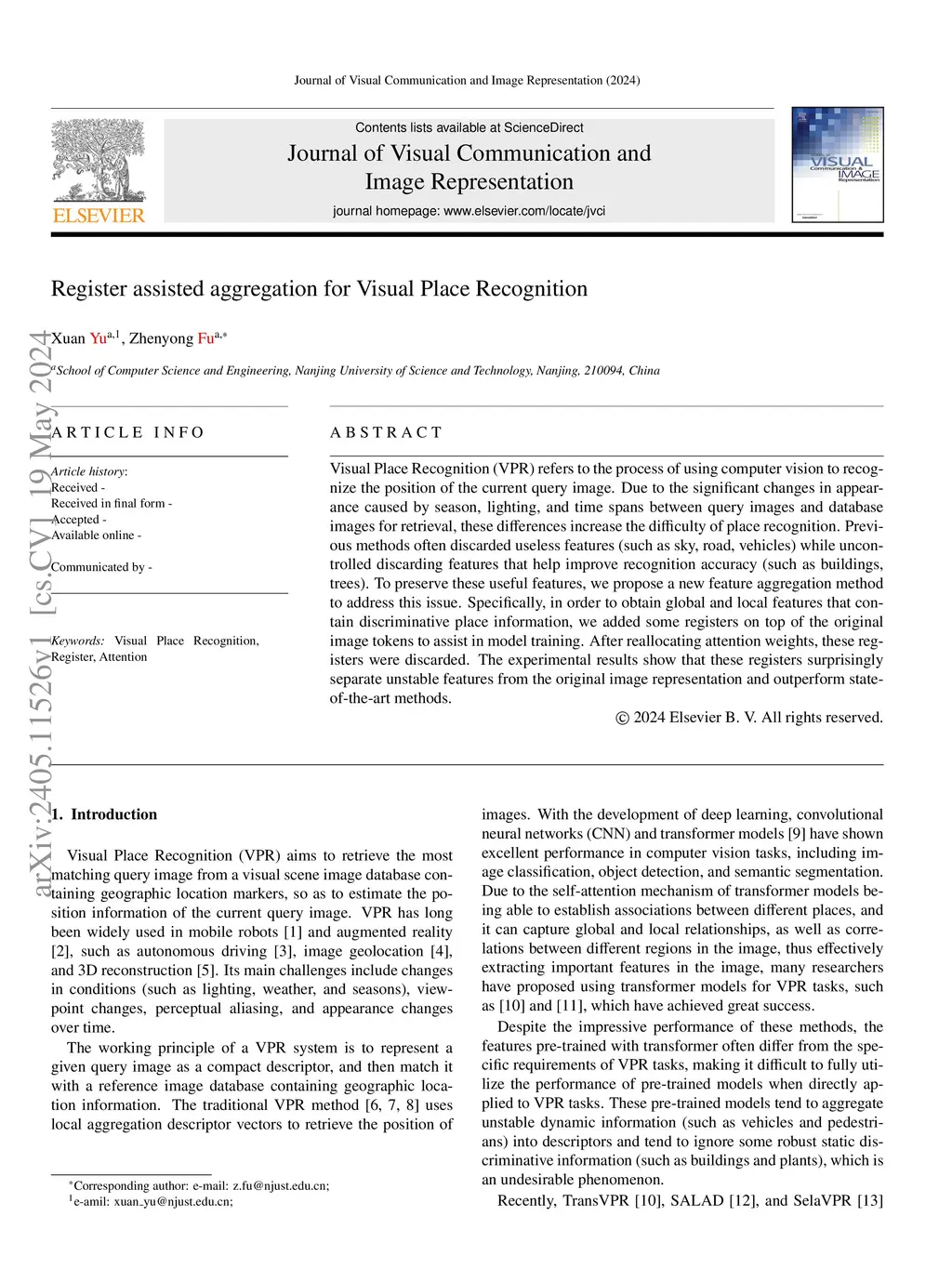 Register assisted aggregation for Visual Place Recognition