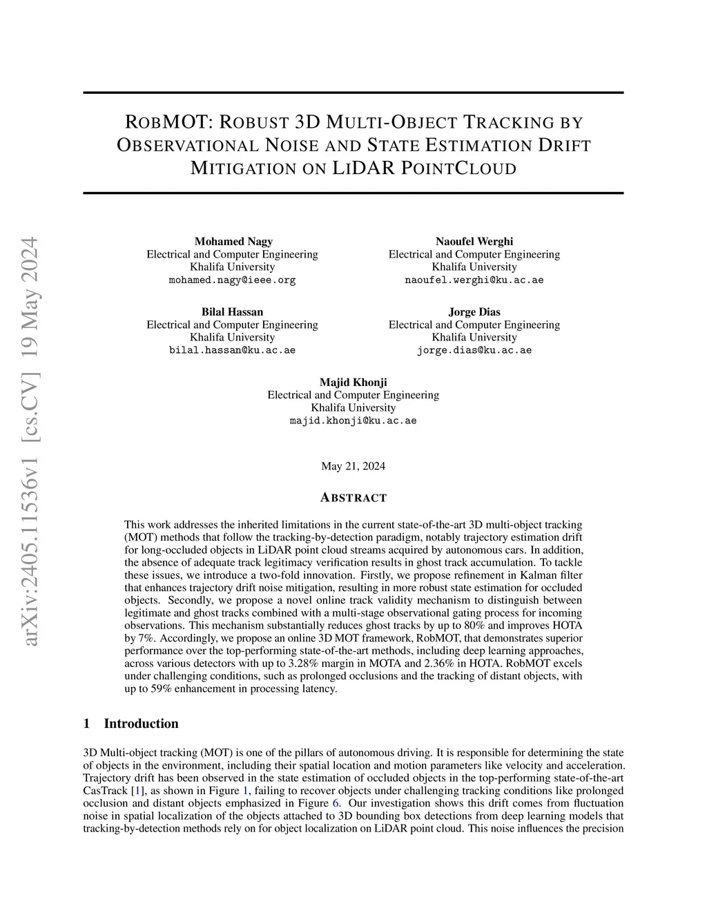 RobMOT: Robust 3D Multi-Object Tracking by Observational Noise and State Estimation Drift Mitigation on LiDAR PointCloud