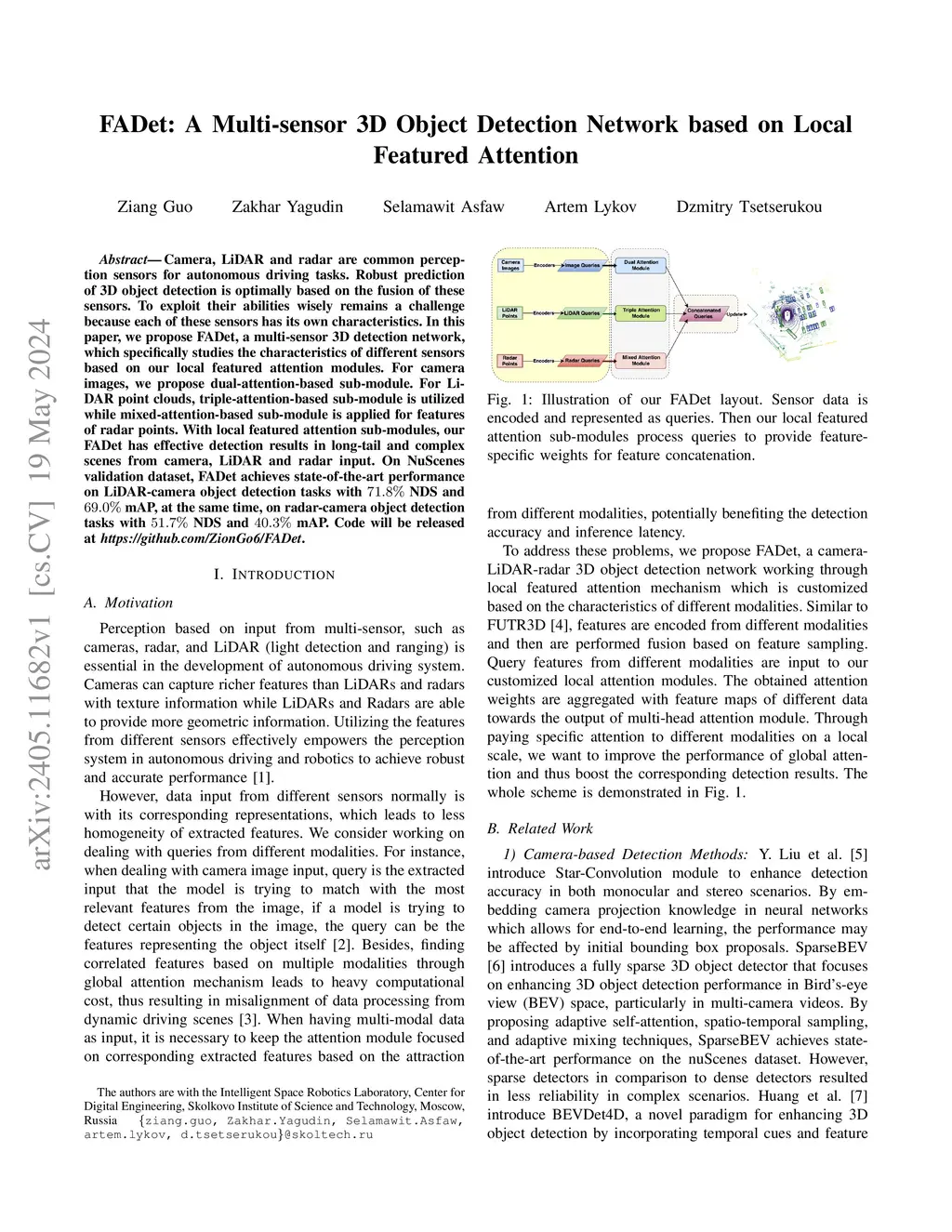 FADet: A Multi-sensor 3D Object Detection Network based on Local
