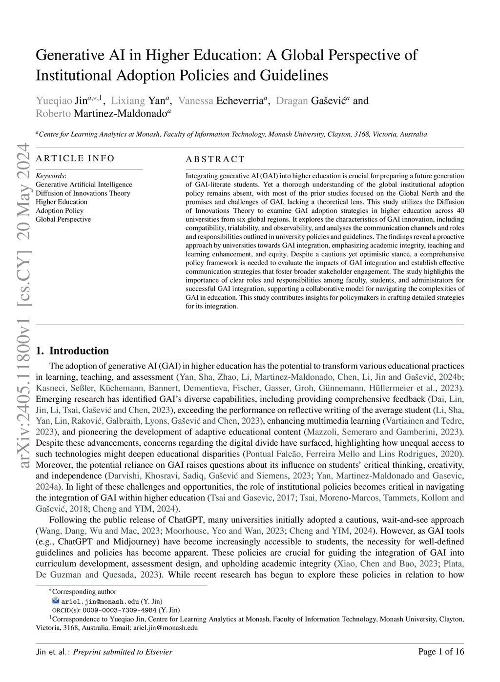 Generative AI in Higher Education: A Global Perspective of Institutional