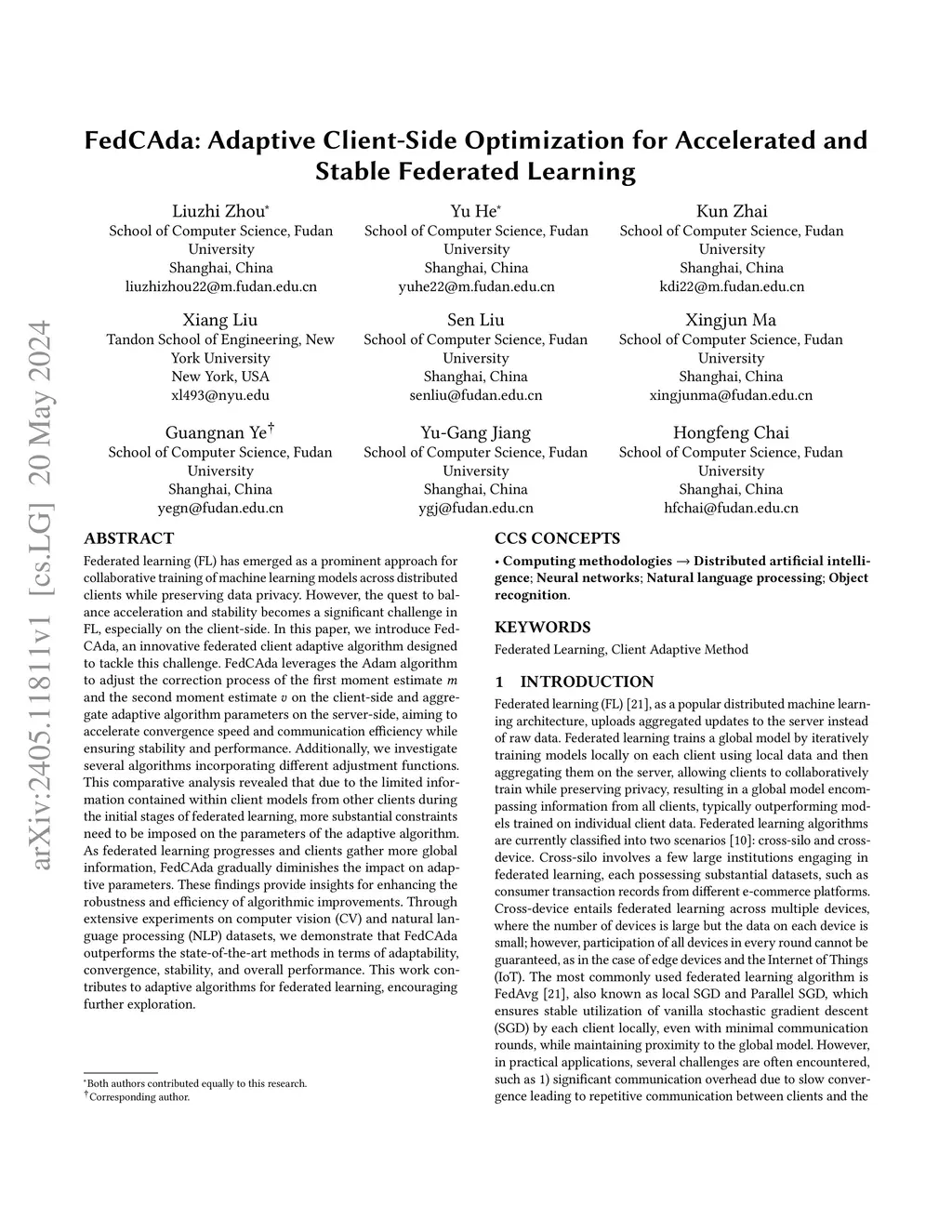 FedCAda: Adaptive Client-Side Optimization for Accelerated and Stable