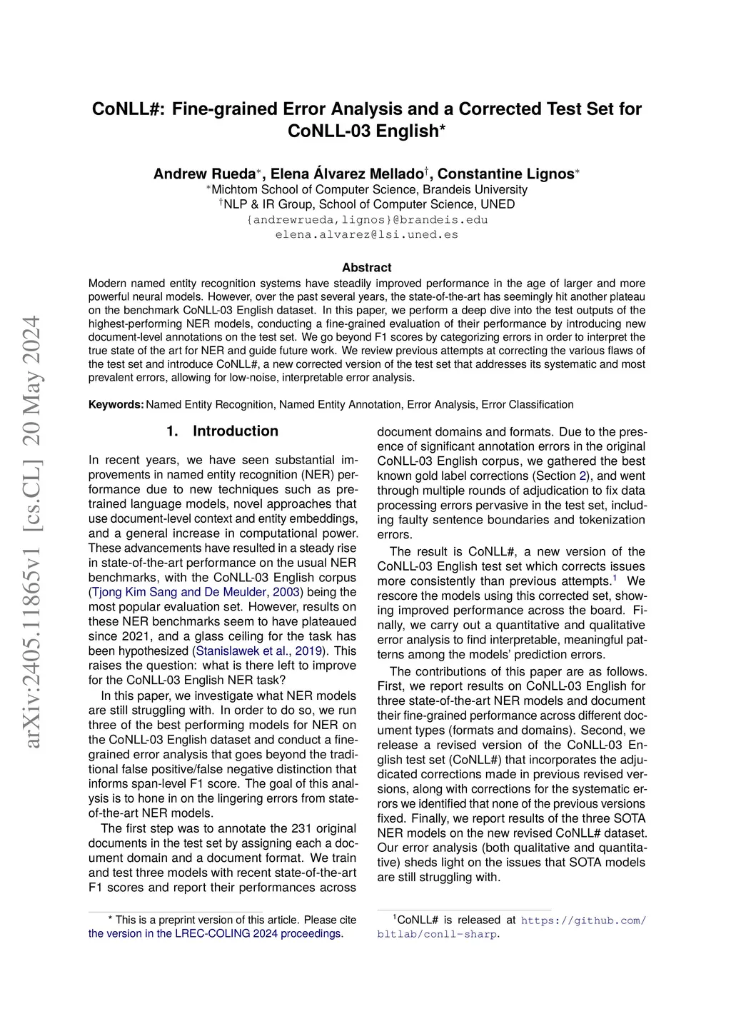 CoNLL#: Fine-grained Error Analysis and a Corrected Test Set for