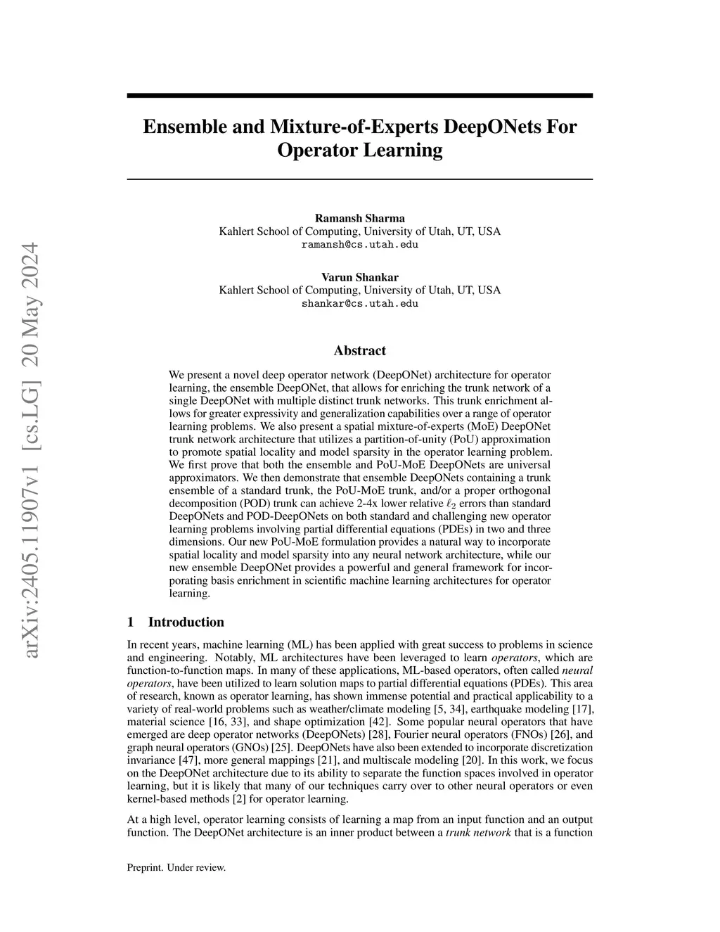 Ensemble and Mixture-of-Experts DeepONets For Operator Learning