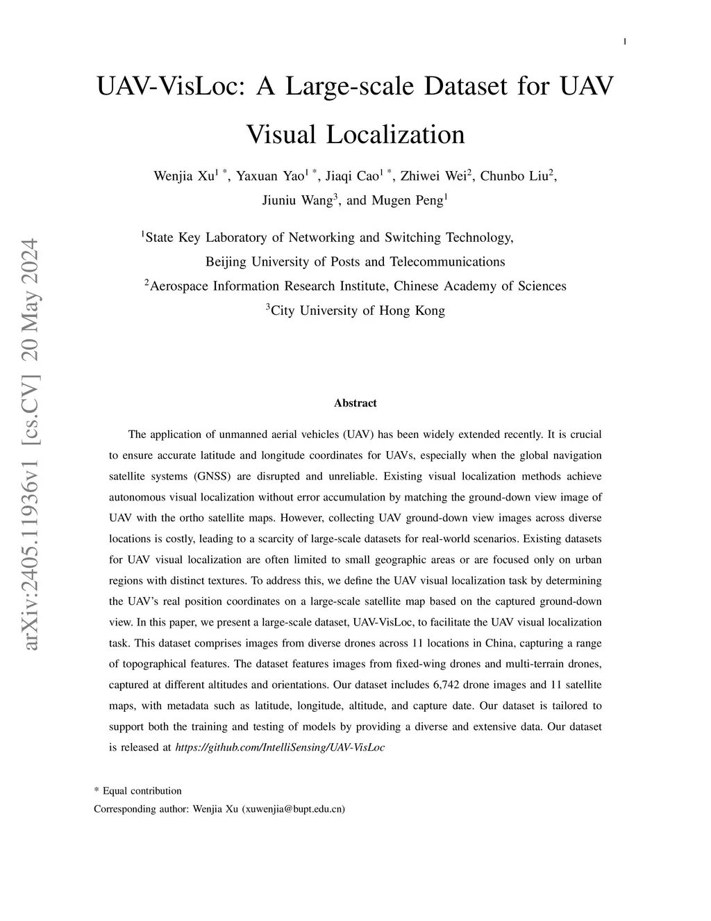 UAV-VisLoc: A Large-scale Dataset for UAV Visual Localization