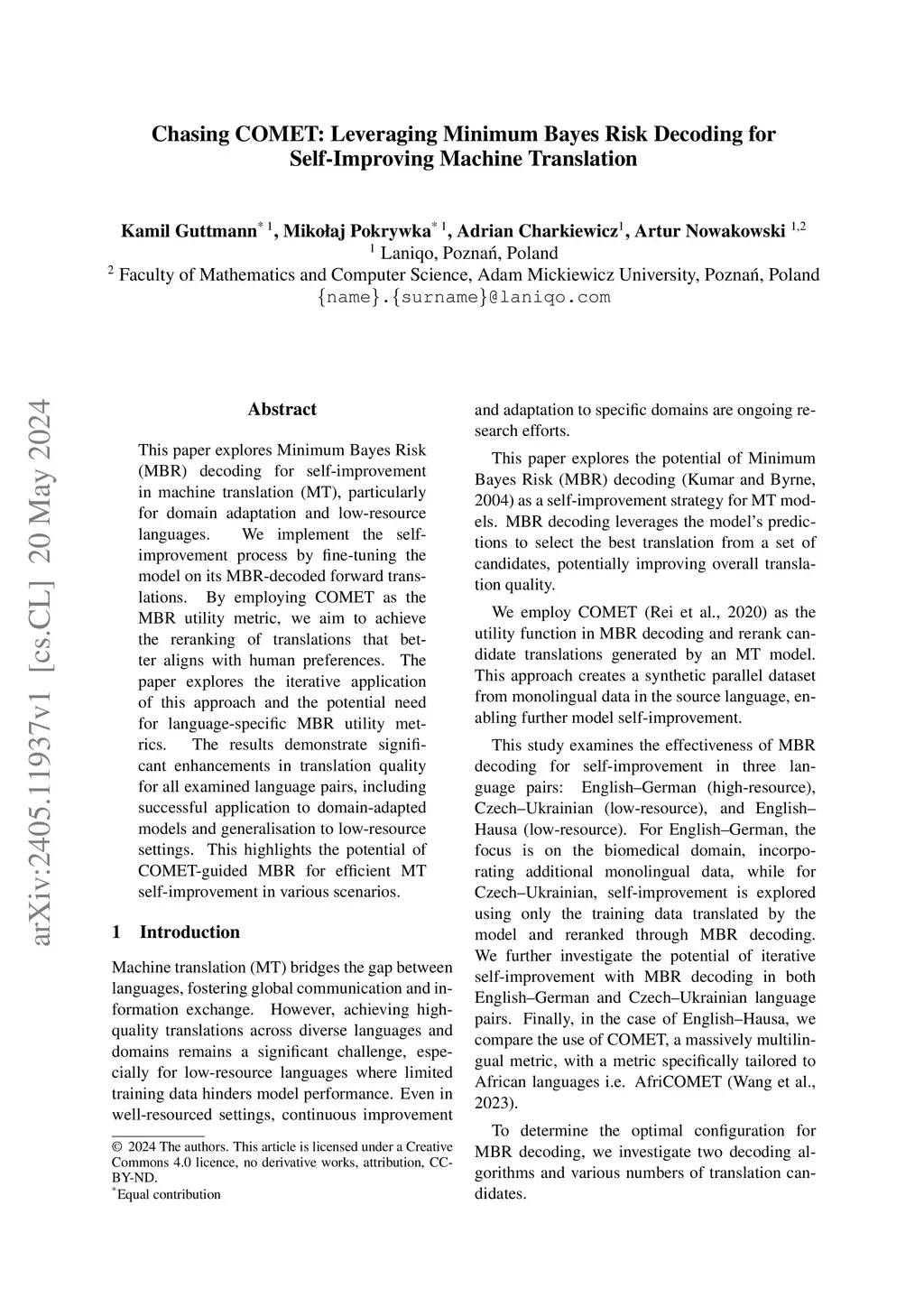 Chasing COMET: Leveraging Minimum Bayes Risk Decoding for Self-Improving