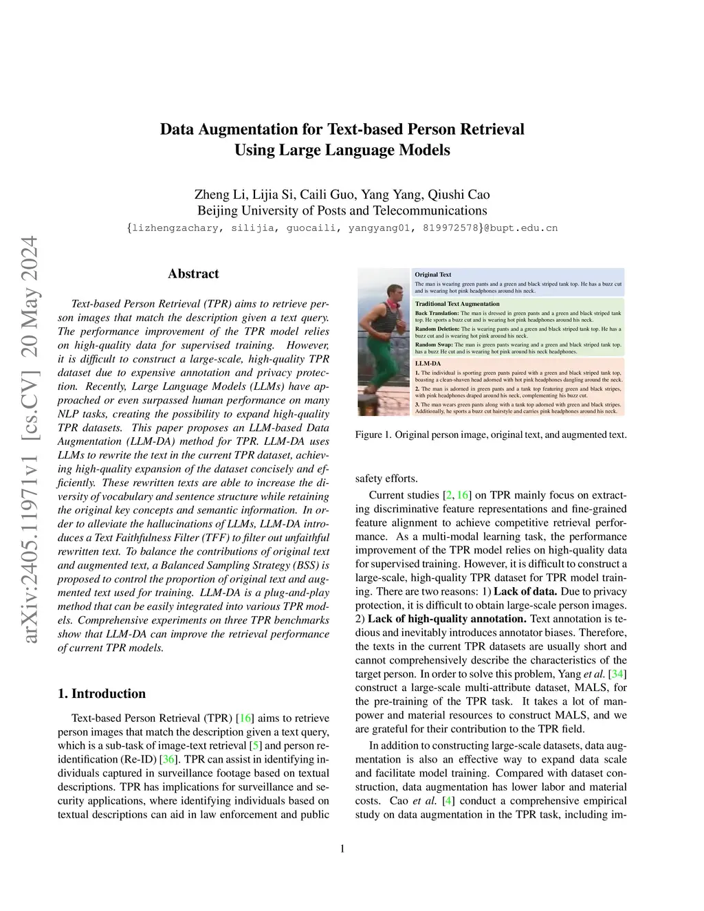 Data Augmentation for Text-based Person Retrieval Using Large Language