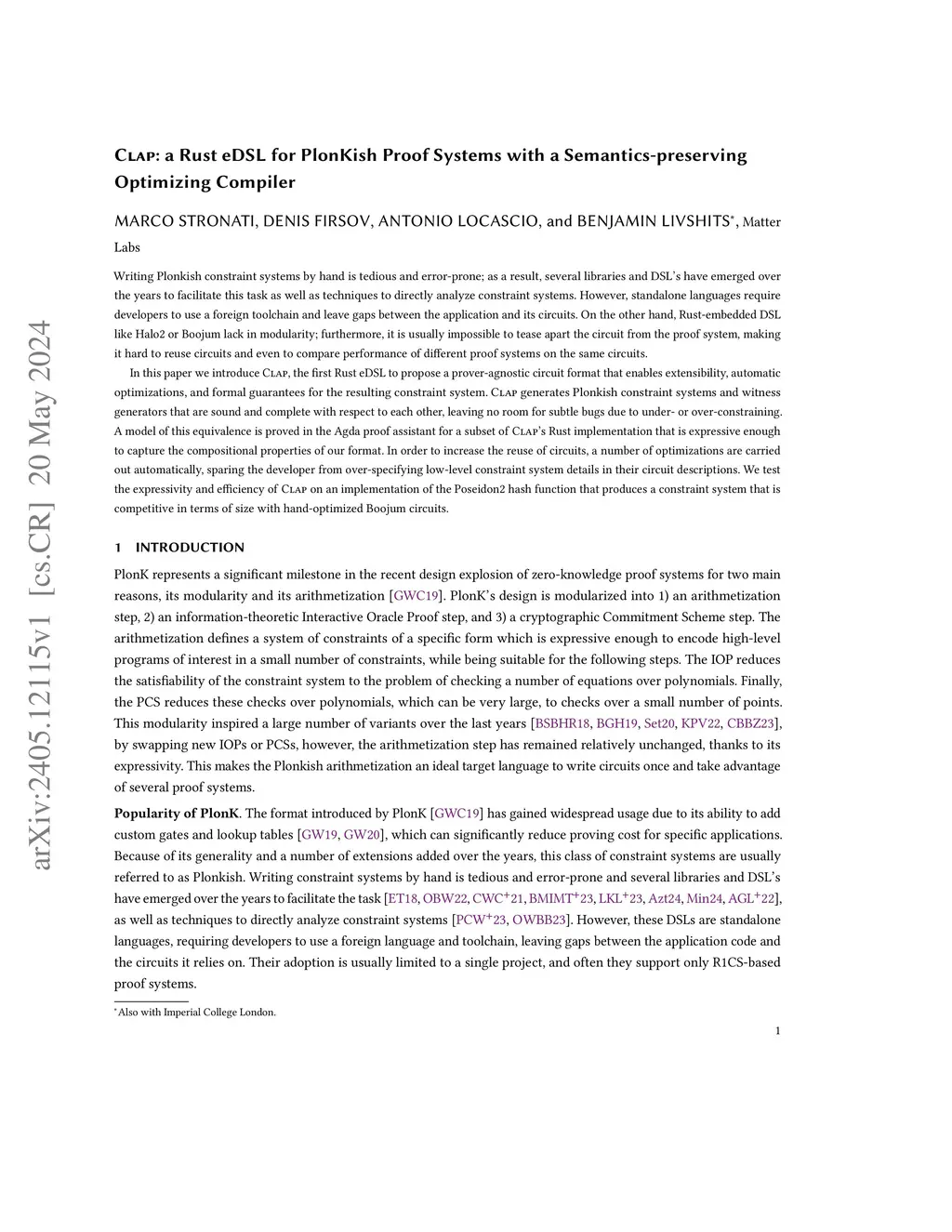Clap: a Semantic-Preserving Optimizing eDSL for Plonkish Proof Systems