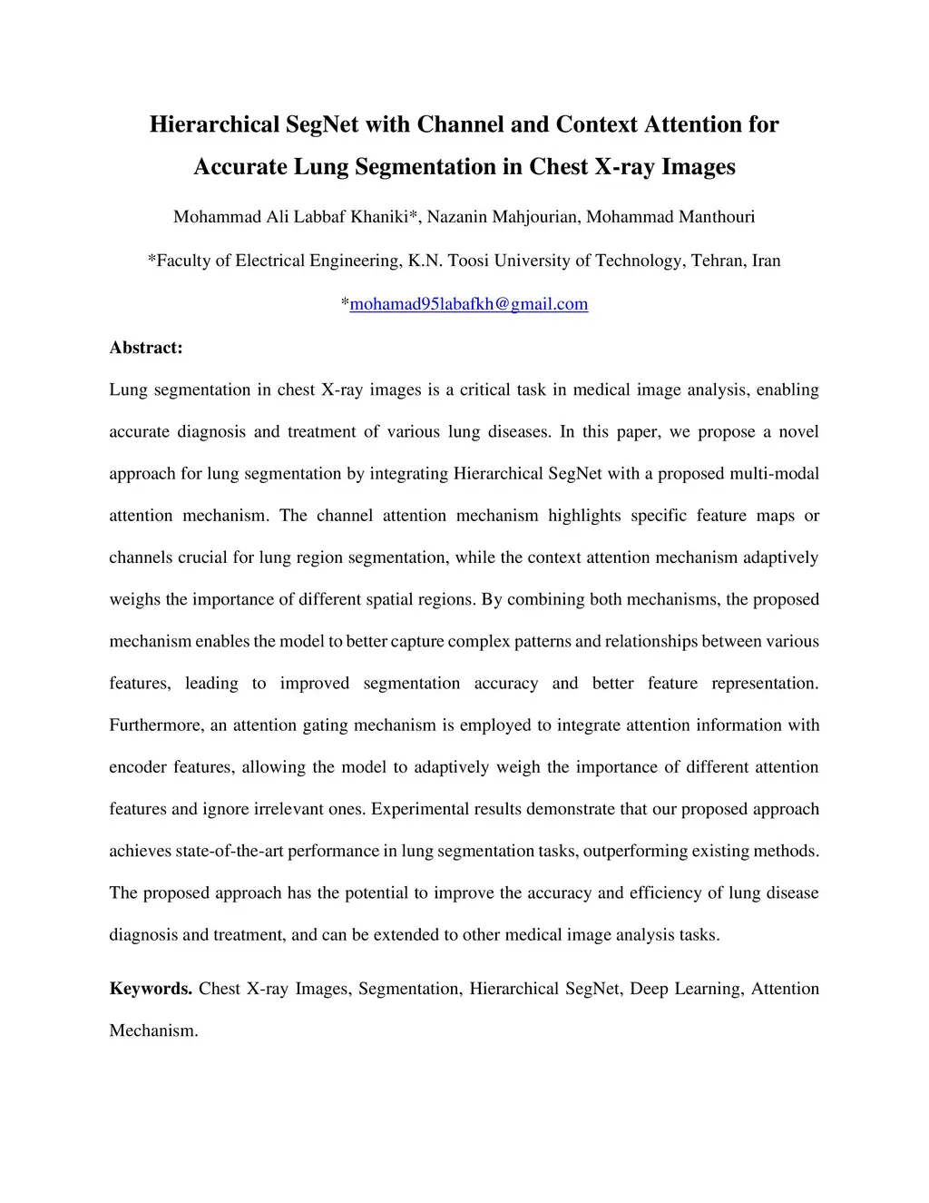 Lung segmentation in chest X-ray images is a critical task in medical image analysis, enabling accurate diagnosis and treatment of various lung diseases. In this paper, we propose a novel approach for lung segmentation by integrating Hierarchical SegNet with a proposed multi-modal attention mechanism. The channel attention mechanism highlights specific feature maps or channels crucial for lung region segmentation, while the context attention mechanism adaptively weighs the importance of different spatial regions. By combining both mechanisms, the proposed mechanism enables the model to better capture complex patterns and relationships between various features, leading to improved segmentation accuracy and better feature representation. Furthermore, an attention gating mechanism is employed to integrate attention information with encoder features, allowing the model to adaptively weigh the importance of different attention features and ignore irrelevant ones. Experimental results demonstrate that our proposed approach achieves state-of-the-art performance in lung segmentation tasks, outperforming existing methods. The proposed approach has the potential to improve the accuracy and efficiency of lung disease diagnosis and treatment, and can be extended to other medical image analysis tasks.
