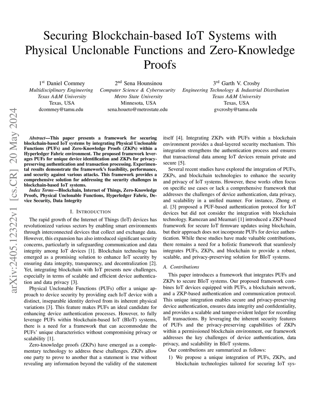 This paper presents a framework for securing blockchain-based IoT systems by integrating Physical Unclonable Functions (PUFs) and Zero-Knowledge Proofs (ZKPs) within a Hyperledger Fabric environment. The proposed framework leverages PUFs for unique device identification and ZKPs for privacy-preserving authentication and transaction processing. Experimental results demonstrate the framework's feasibility, performance, and security against various attacks. This framework provides a comprehensive solution for addressing the security challenges in blockchain-based IoT systems.