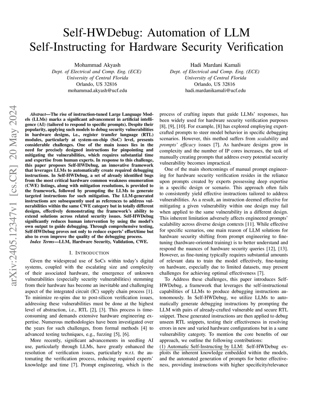 Self-HWDebug: Automation of LLM Self-Instructing for Hardware Security