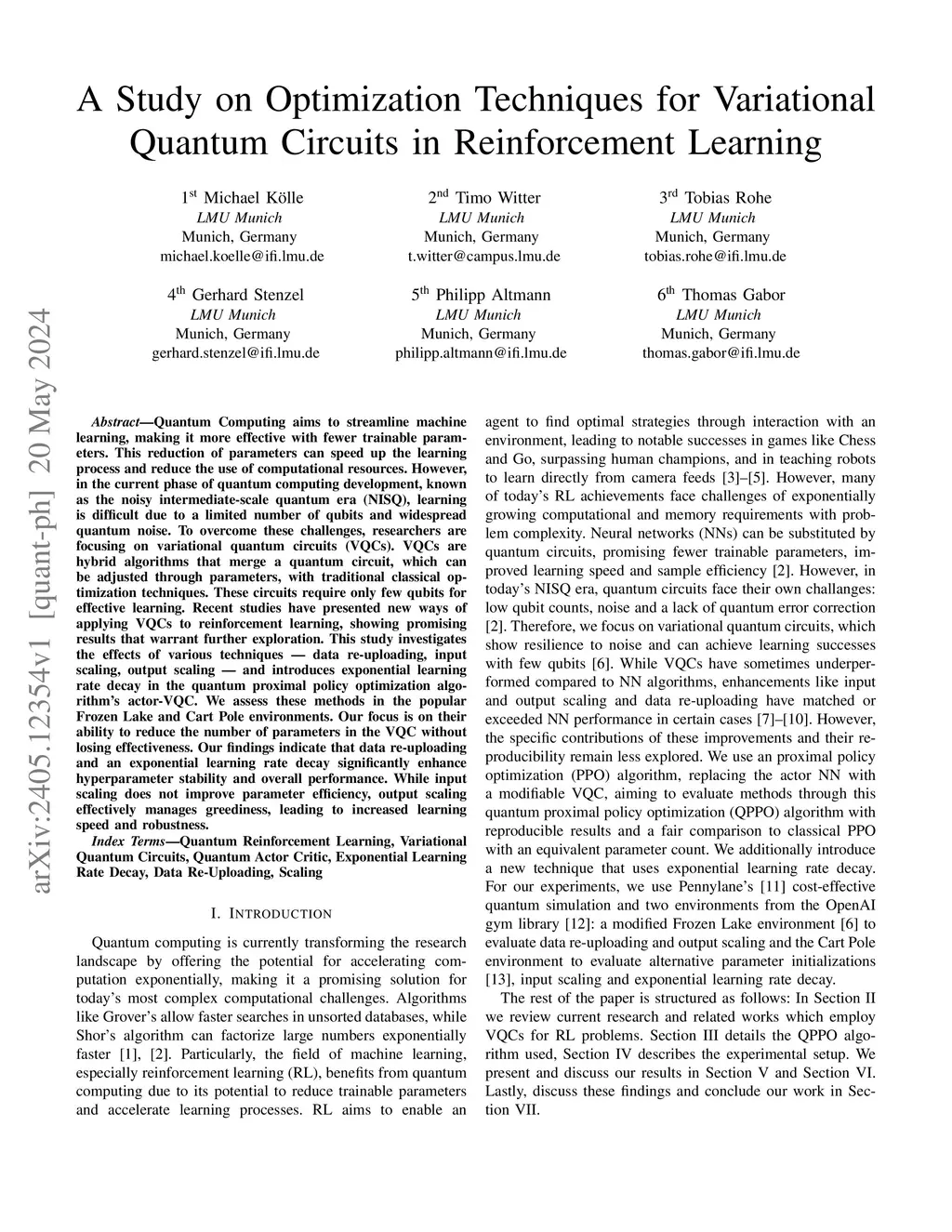 Quantum Computing aims to streamline machine learning, making it more effective with fewer trainable parameters. This reduction of parameters can speed up the learning process and reduce the use of computational resources. However, in the current phase of quantum computing development, known as the noisy intermediate-scale quantum era (NISQ), learning is difficult due to a limited number of qubits and widespread quantum noise. To overcome these challenges, researchers are focusing on variational quantum circuits (VQCs). VQCs are hybrid algorithms that merge a quantum circuit, which can be adjusted through parameters, with traditional classical optimization techniques. These circuits require only few qubits for effective learning. Recent studies have presented new ways of applying VQCs to reinforcement learning, showing promising results that warrant further exploration. This study investigates the effects of various techniques -- data re-uploading, input scaling, output scaling -- and introduces exponential learning rate decay in the quantum proximal policy optimization algorithm's actor-VQC. We assess these methods in the popular Frozen Lake and Cart Pole environments. Our focus is on their ability to reduce the number of parameters in the VQC without losing effectiveness. Our findings indicate that data re-uploading and an exponential learning rate decay significantly enhance hyperparameter stability and overall performance. While input scaling does not improve parameter efficiency, output scaling effectively manages greediness, leading to increased learning speed and robustness.