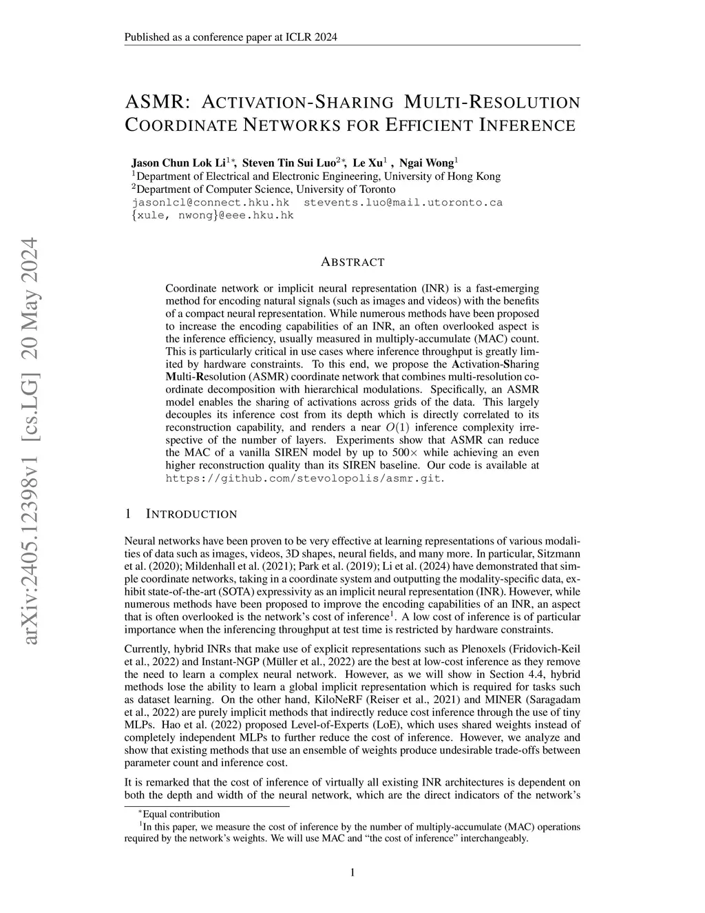 ASMR: Activation-sharing Multi-resolution Coordinate Networks For