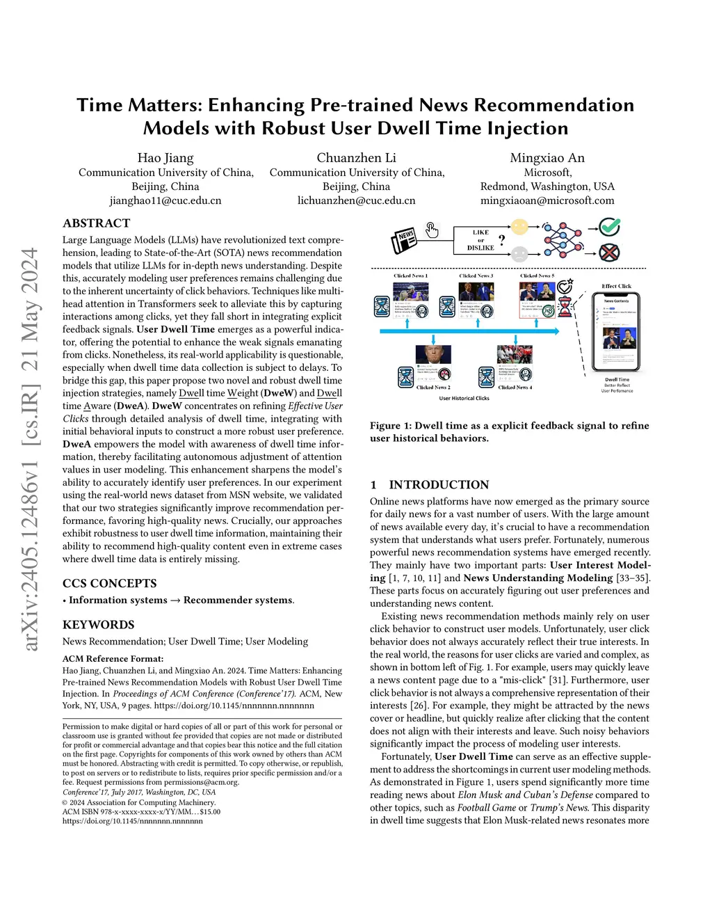 Large Language Models (LLMs) have revolutionized text comprehension, leading to State-of-the-Art (SOTA) news recommendation models that utilize LLMs for in-depth news understanding. Despite this, accurately modeling user preferences remains challenging due to the inherent uncertainty of click behaviors. Techniques like multi-head attention in Transformers seek to alleviate this by capturing interactions among clicks, yet they fall short in integrating explicit feedback signals. User Dwell Time emerges as a powerful indicator, offering the potential to enhance the weak signals emanating from clicks. Nonetheless, its real-world applicability is questionable, especially when dwell time data collection is subject to delays. To bridge this gap, this paper proposes two novel and robust dwell time injection strategies, namely Dwell time Weight (DweW) and Dwell time Aware (DweA). Dwe} concentrates on refining Effective User Clicks through detailed analysis of dwell time, integrating with initial behavioral inputs to construct a more robust user preference. DweA empowers the model with awareness of dwell time information, thereby facilitating autonomous adjustment of attention values in user modeling. This enhancement sharpens the model's ability to accurately identify user preferences. In our experiment using the real-world news dataset from MSN website, we validated that our two strategies significantly improve recommendation performance, favoring high-quality news. Crucially, our approaches exhibit robustness to user dwell time information, maintaining their ability to recommend high-quality content even in extreme cases where dwell time data is entirely missing.