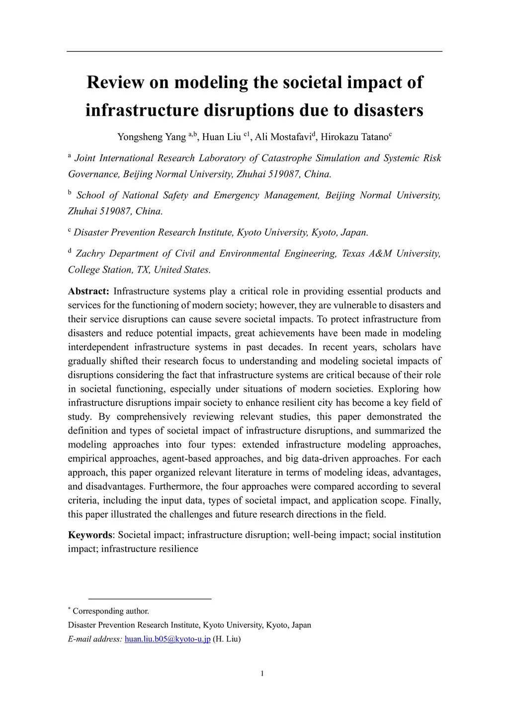 Review on modeling the societal impact of infrastructure disruptions due
