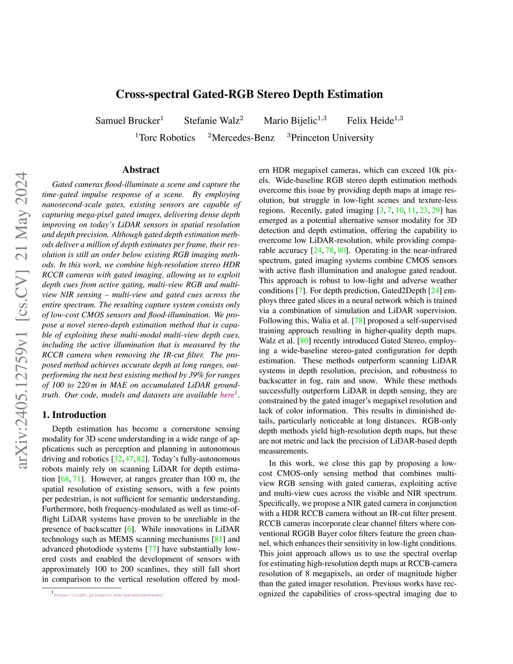 Cross-spectral Gated-RGB Stereo Depth Estimation