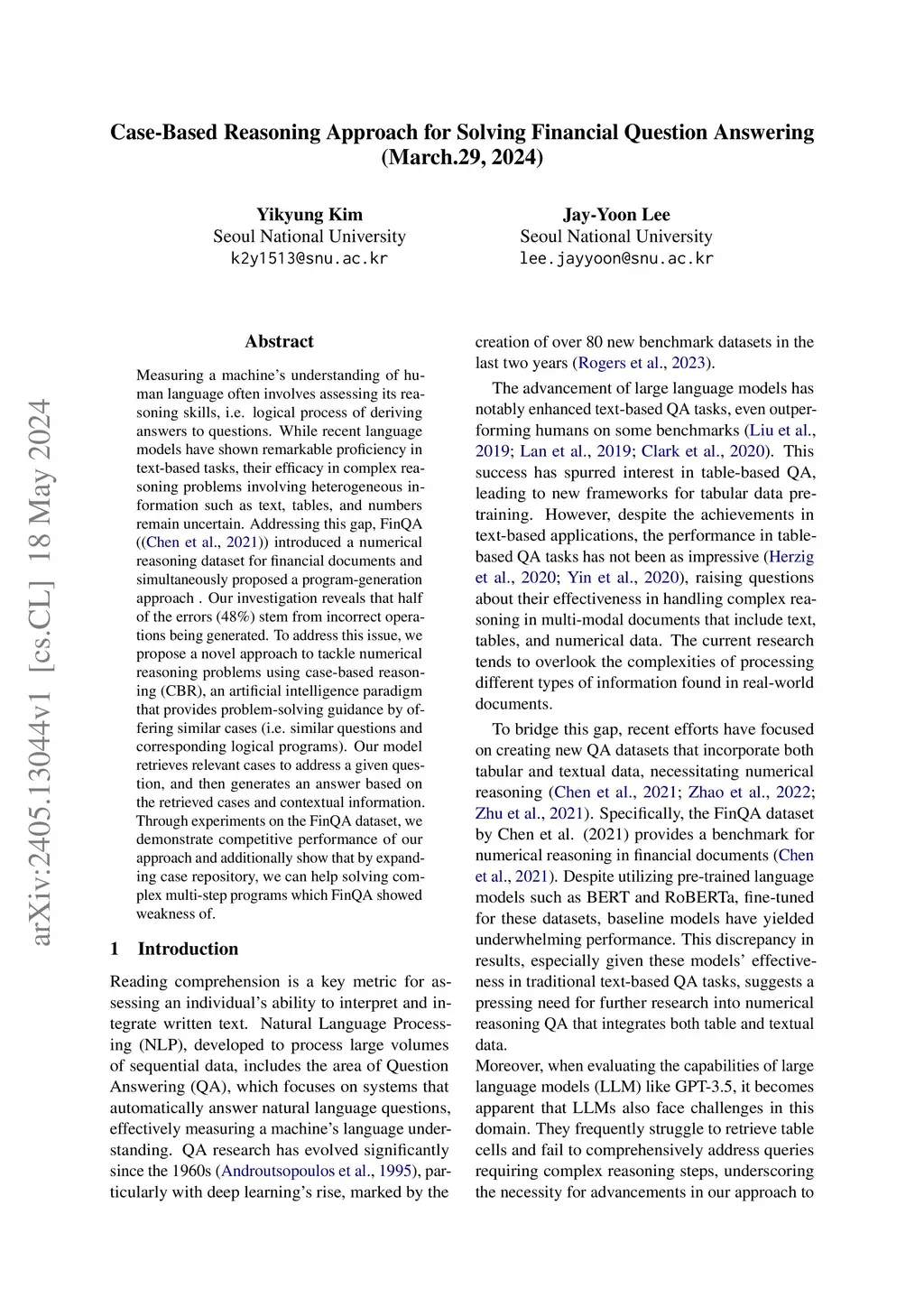 Case-Based Reasoning Approach for Solving Financial Question Answering
