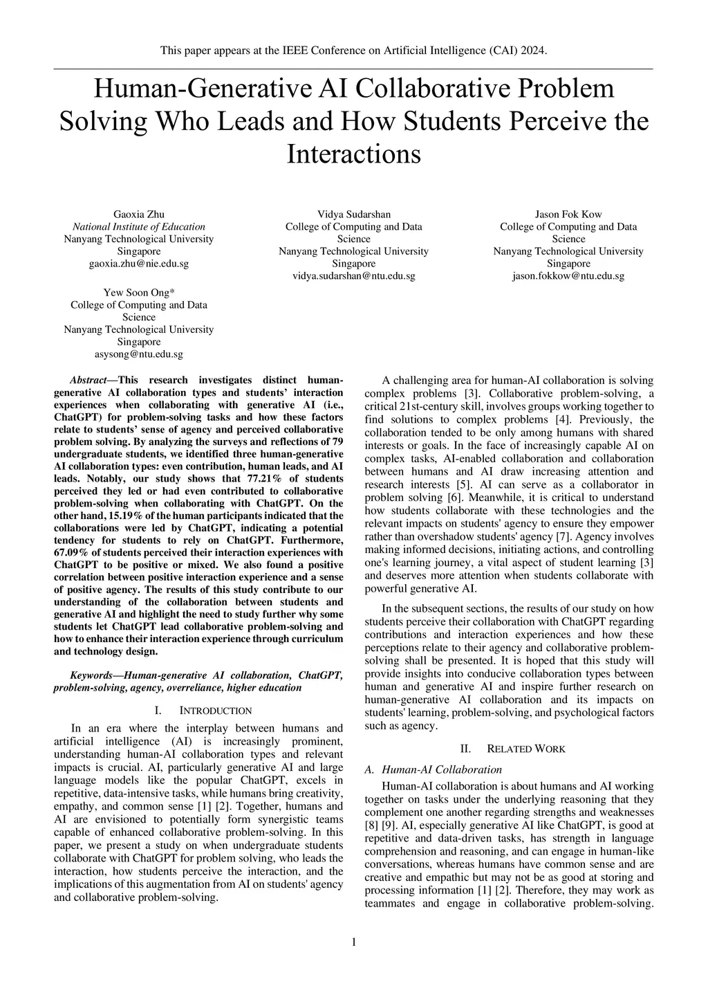 Human-Generative AI Collaborative Problem Solving Who Leads and How