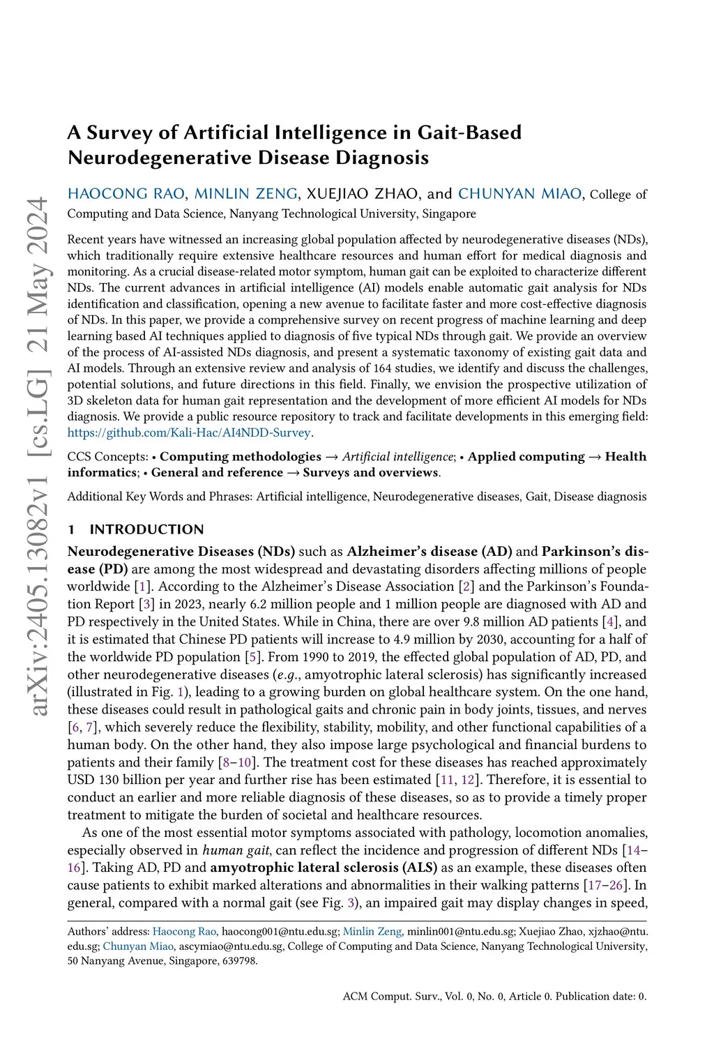 A Survey of Artificial Intelligence in Gait-Based Neurodegenerative Disease Diagnosis