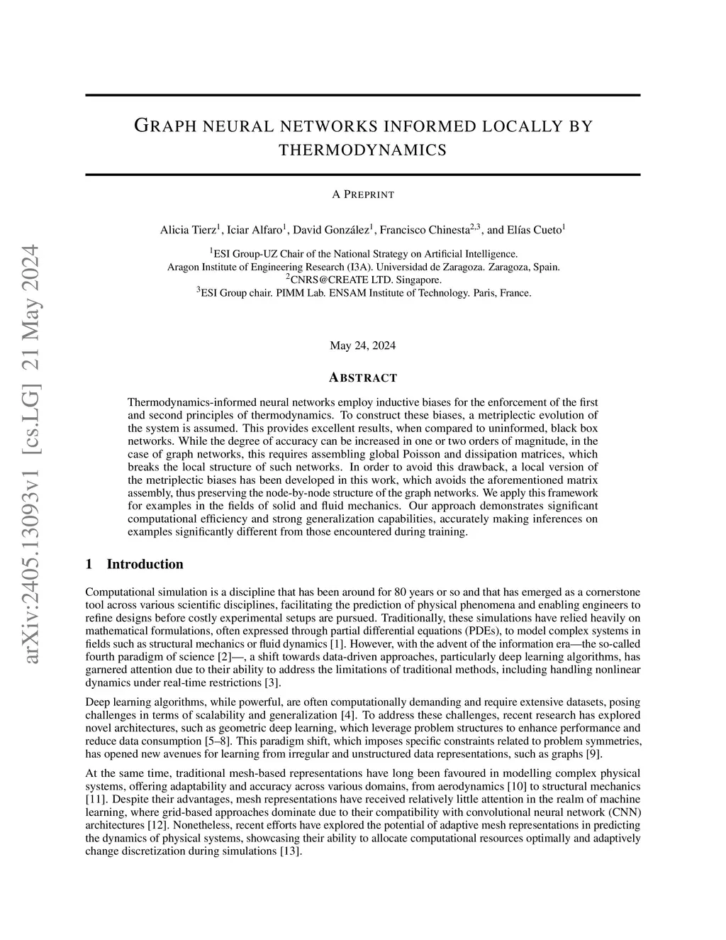 Thermodynamics-informed neural networks employ inductive biases for the enforcement of the first and second principles of thermodynamics. To construct these biases, a metriplectic evolution of the system is assumed. This provides excellent results, when compared to uninformed, black box networks. While the degree of accuracy can be increased in one or two orders of magnitude, in the case of graph networks, this requires assembling global Poisson and dissipation matrices, which breaks the local structure of such networks. In order to avoid this drawback, a local version of the metriplectic biases has been developed in this work, which avoids the aforementioned matrix assembly, thus preserving the node-by-node structure of the graph networks. We apply this framework for examples in the fields of solid and fluid mechanics. Our approach demonstrates significant computational efficiency and strong generalization capabilities, accurately making inferences on examples significantly different from those encountered during training.