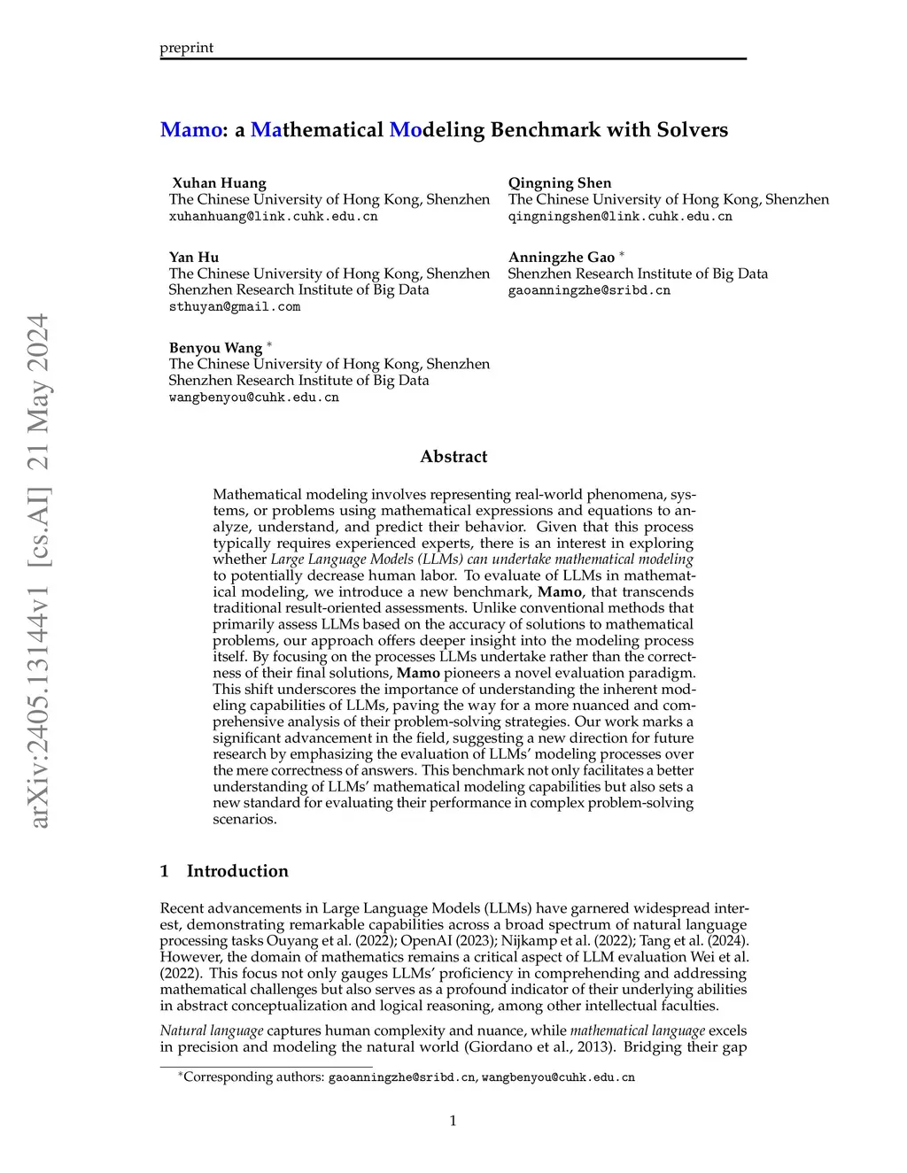 Large Language Models (LLMs) have demonstrated strong performance across various natural language processing tasks, yet their proficiency in mathematical reasoning remains a key challenge. Addressing the gap between natural and mathematical language requires advanced reasoning capabilities, approaching those of Artificial General Intelligence (AGI). However, the evaluation remains challenging, as perfectly representing reality is inherently elusive, and traditional methods like manual or direct comparison of mathematical statements (Ramamonjison et al., 2023) are insufficient for assessing true modeling ability. We propose a process-oriented framework to evaluate LLMs' ability to construct mathematical models, using solvers to compare outputs with ground truth. Introducing Mamo, a benchmark with 1,209 questions covering ordinary differential equations, linear programming, and mixed-integer linear programming, we enable automatic evaluation of modeling accuracy. The results show that existing LLMs struggle with complex mathematical modeling tasks, with larger models demonstrating superior performance, while open-source models remain competitive in simpler cases but still fall short of proprietary models in more challenging problems.