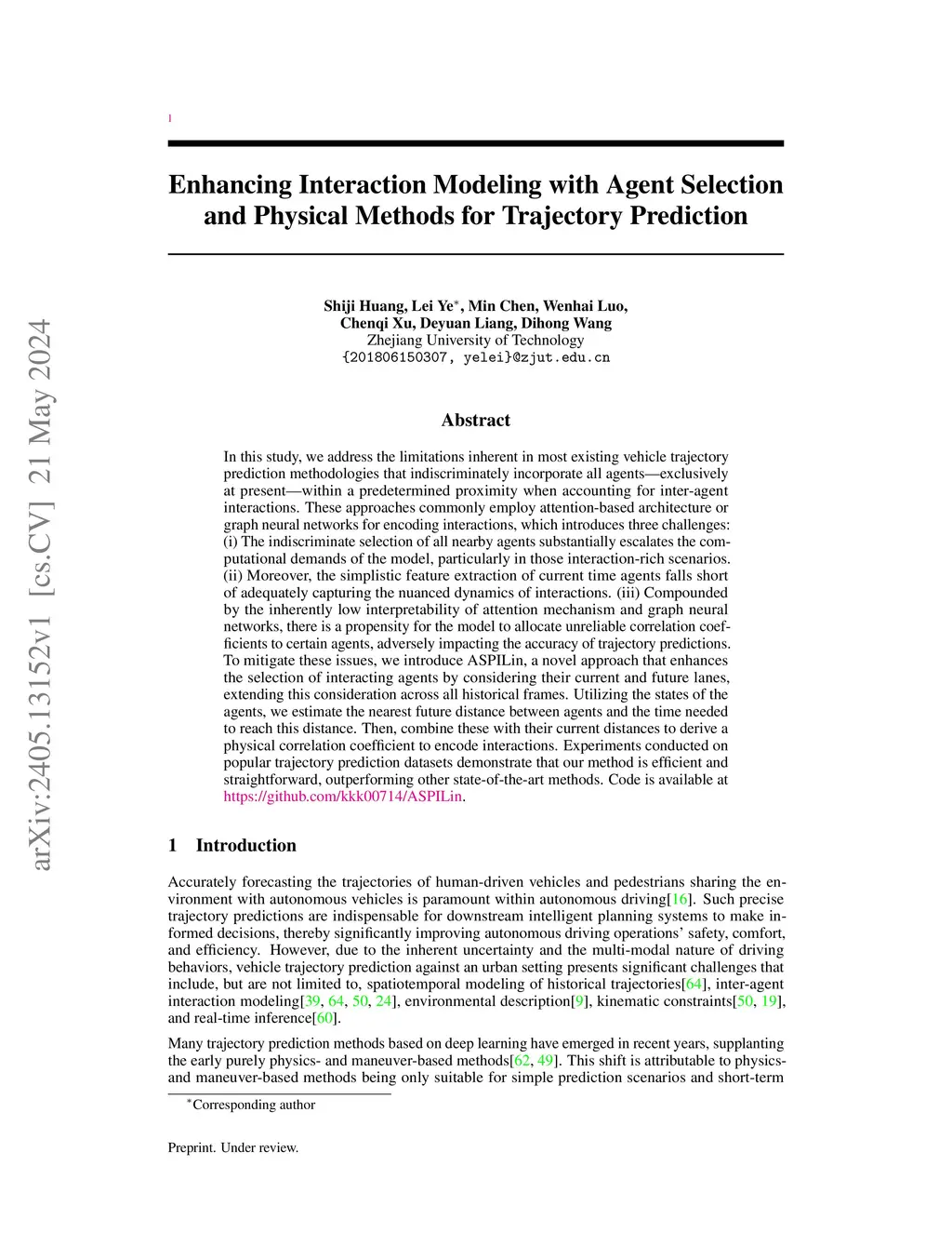 A thorough understanding of the interaction between the target agent and surrounding agents is a prerequisite for accurate trajectory prediction. Although many methods have been explored, they assign correlation coefficients to surrounding agents in a purely learning-based manner. In this study, we present ASPILin, which manually selects interacting agents and replaces the attention scores in Transformer with a newly computed physical correlation coefficient, enhancing the interpretability of interaction modeling. Surprisingly, these simple modifications can significantly improve prediction performance and substantially reduce computational costs. We intentionally simplified our model in other aspects, such as map encoding. Remarkably, experiments conducted on the INTERACTION, highD, and CitySim datasets demonstrate that our method is efficient and straightforward, outperforming other state-of-the-art methods.