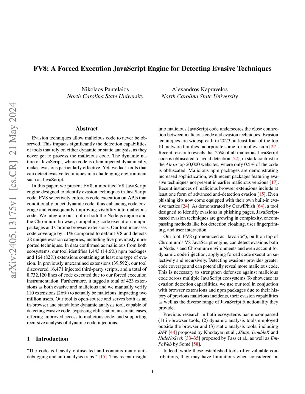 FV8: A Forced Execution JavaScript Engine for Detecting Evasive