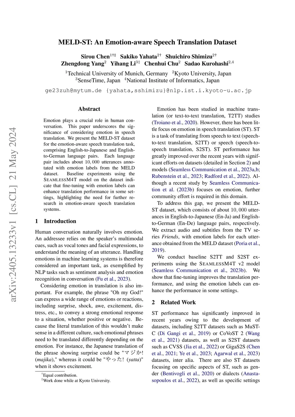 MELD-ST: An Emotion-aware Speech Translation Dataset
