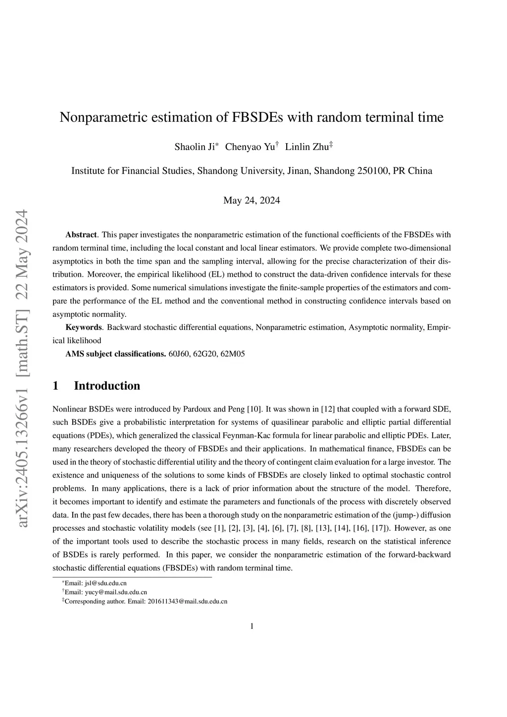 Nonparametric estimation of FBSDEs with random terminal time