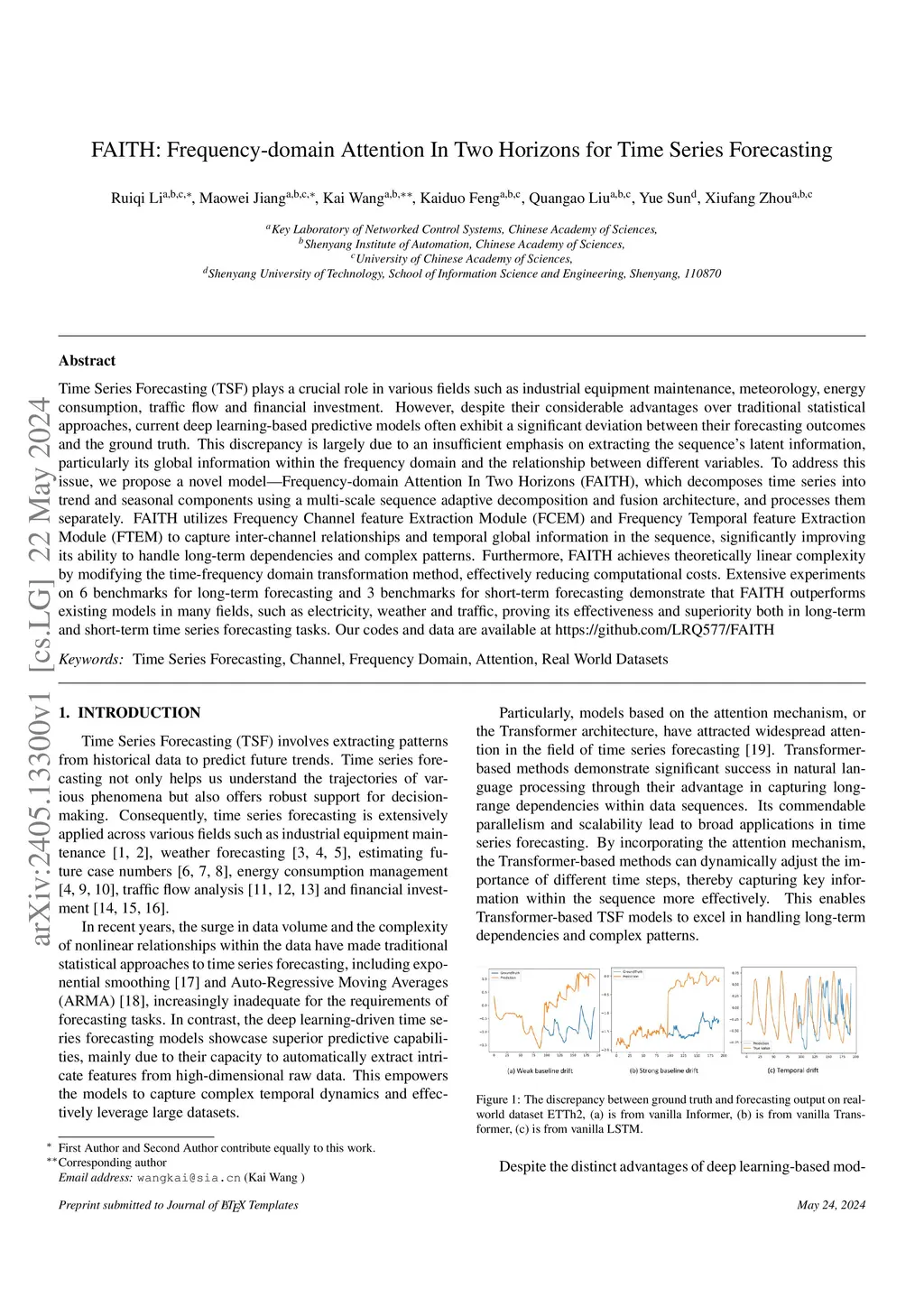 Time Series Forecasting plays a crucial role in various fields such as industrial equipment maintenance, meteorology, energy consumption, traffic flow and financial investment. However, despite their considerable advantages over traditional statistical approaches, current deep learning-based predictive models often exhibit a significant deviation between their forecasting outcomes and the ground truth. This discrepancy is largely due to an insufficient emphasis on extracting the sequence's latent information, particularly its global information within the frequency domain and the relationship between different variables. To address this issue, we propose a novel model Frequency-domain Attention In Two Horizons, which decomposes time series into trend and seasonal components using a multi-scale sequence adaptive decomposition and fusion architecture, and processes them separately. FAITH utilizes Frequency Channel feature Extraction Module and Frequency Temporal feature Extraction Module to capture inter-channel relationships and temporal global information in the sequence, significantly improving its ability to handle long-term dependencies and complex patterns. Furthermore, FAITH achieves theoretically linear complexity by modifying the time-frequency domain transformation method, effectively reducing computational costs. Extensive experiments on 6 benchmarks for long-term forecasting and 3 benchmarks for short-term forecasting demonstrate that FAITH outperforms existing models in many fields, such as electricity, weather and traffic, proving its effectiveness and superiority both in long-term and short-term time series forecasting tasks. Our codes and data are available at https://github.com/LRQ577/FAITH.